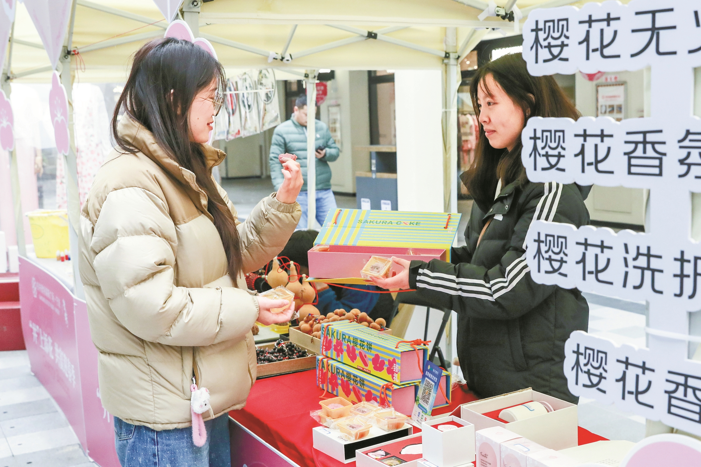 图为顾客在挑选樱花饼。(沈天舟 倪雨辰 周正宵 文/摄)