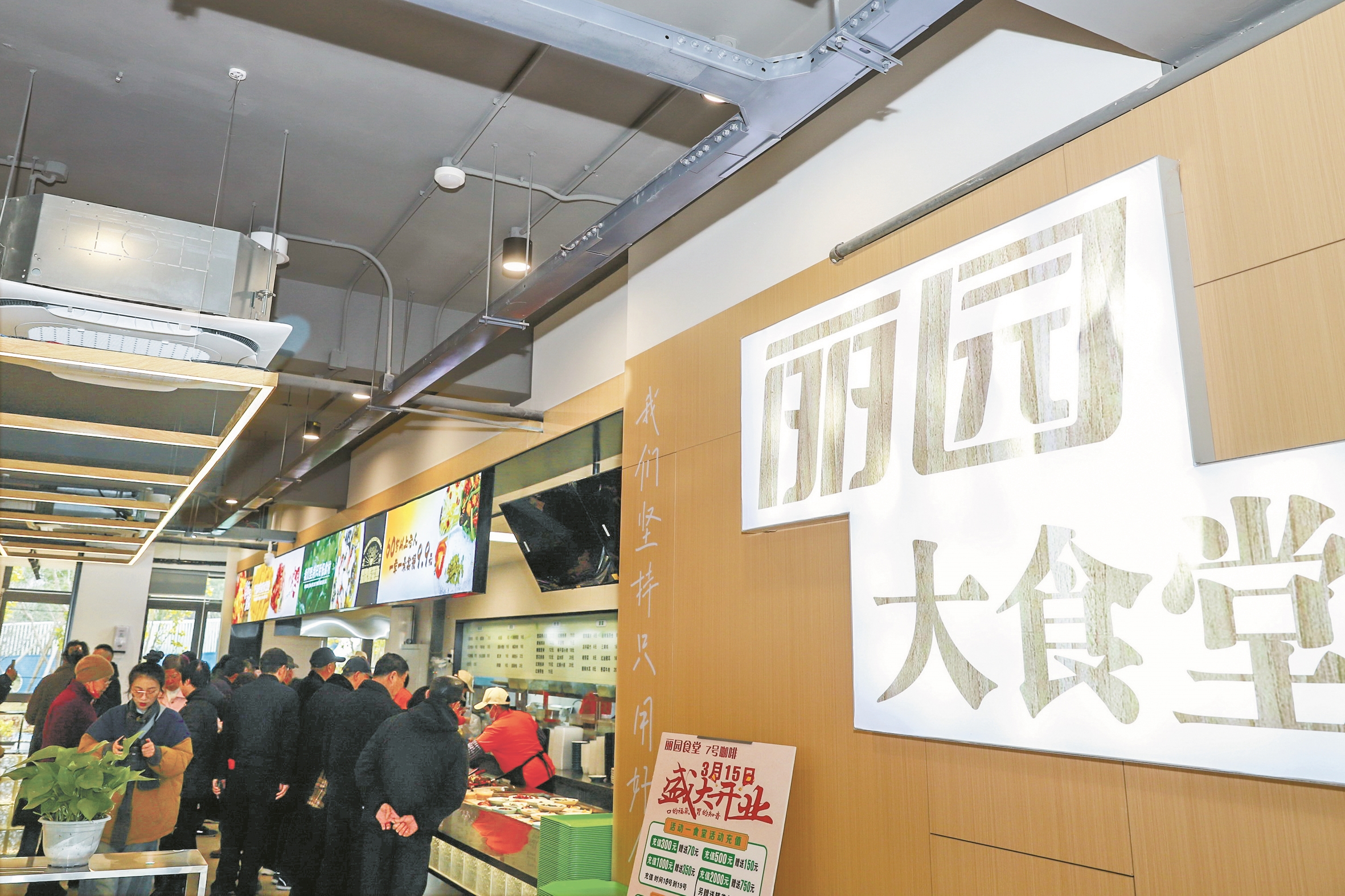 社区与第三方团队共建邻里中心,可以让引入商业“更亲民”。如位于海曙段塘的丽园未来社区邻里中心开出“大食堂”,“一荤一素一汤一饭9.9元”套餐走红,物美价廉的菜品不仅吸引了社区居民就餐,周边不少打工族也纷纷前来用餐。食堂开业半个月,线上线下日均单量已达400单。