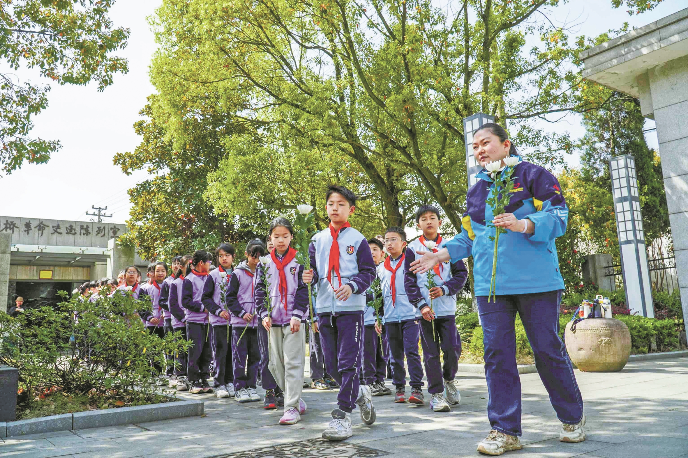 4月2日,海曙区高桥镇高桥社区联合高桥镇中心小学开展祭英烈活动。(记者 徐能 通讯员 蔡迪)