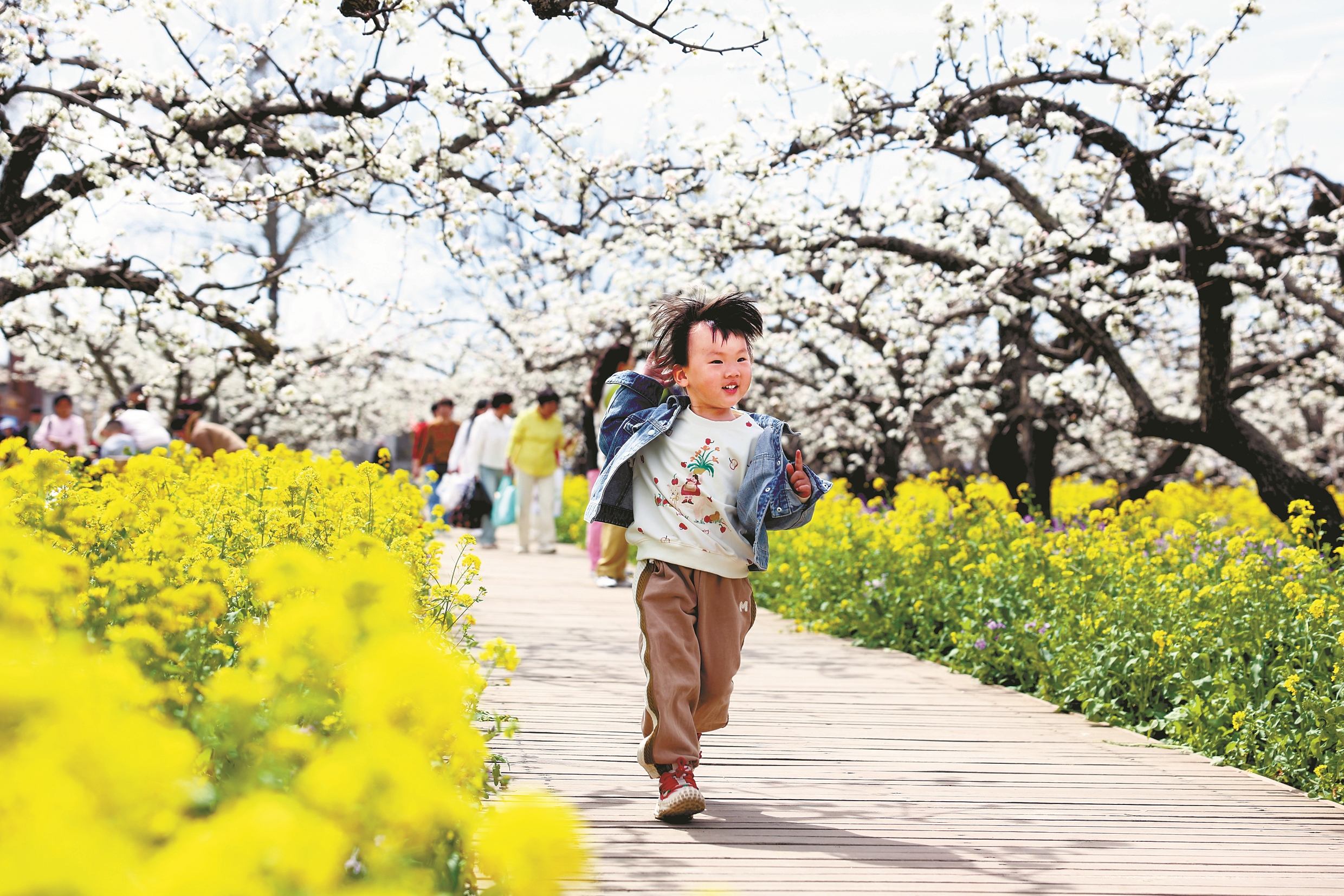 近日,河北省晋州市17万亩梨树迎来盛花期,吸引大量游客。(新华社发)