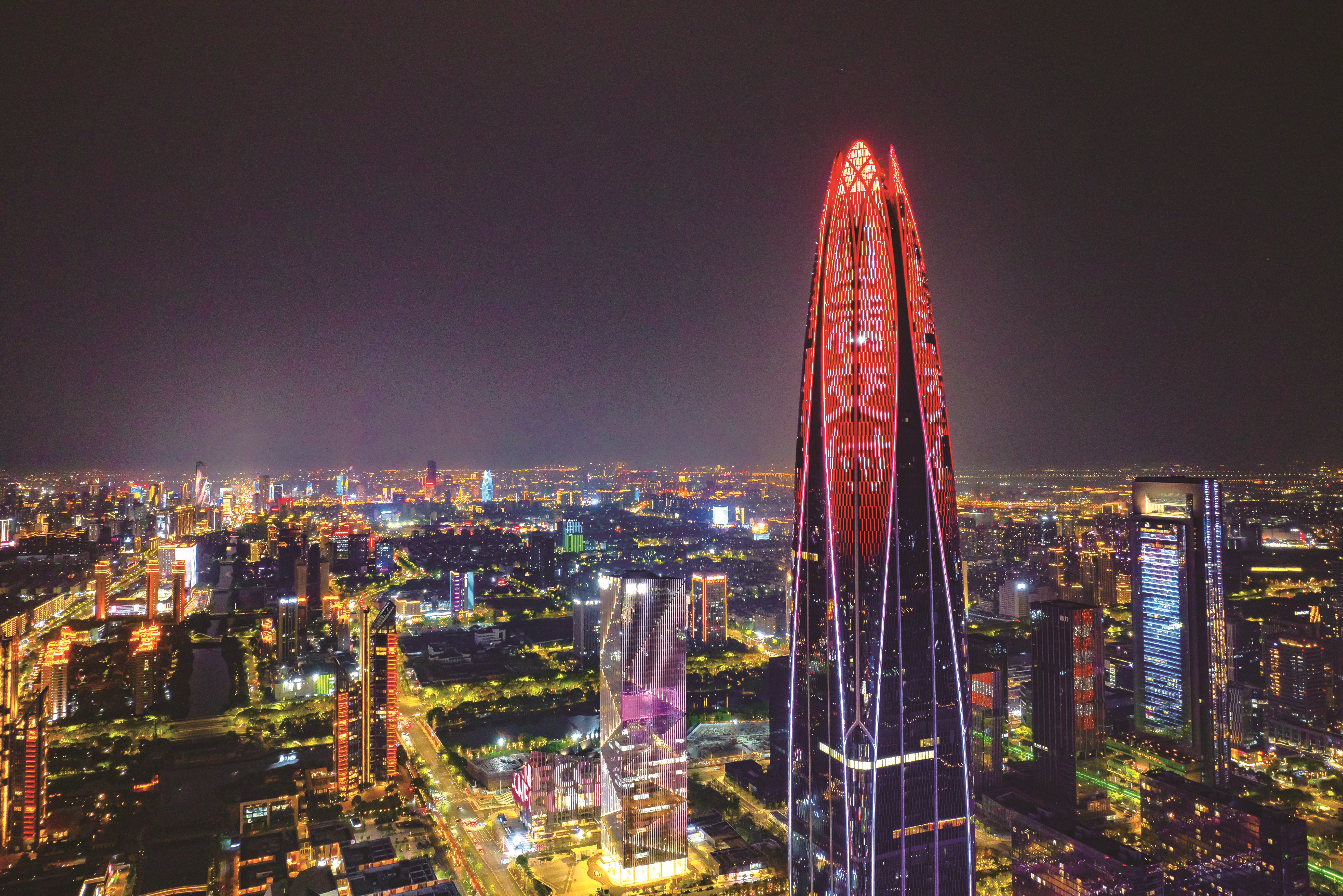 2024年4月,顶层塔冠外桁架完成安装,“莲花瓣”雏形显露,9月,全玻璃幕墙安装完成。