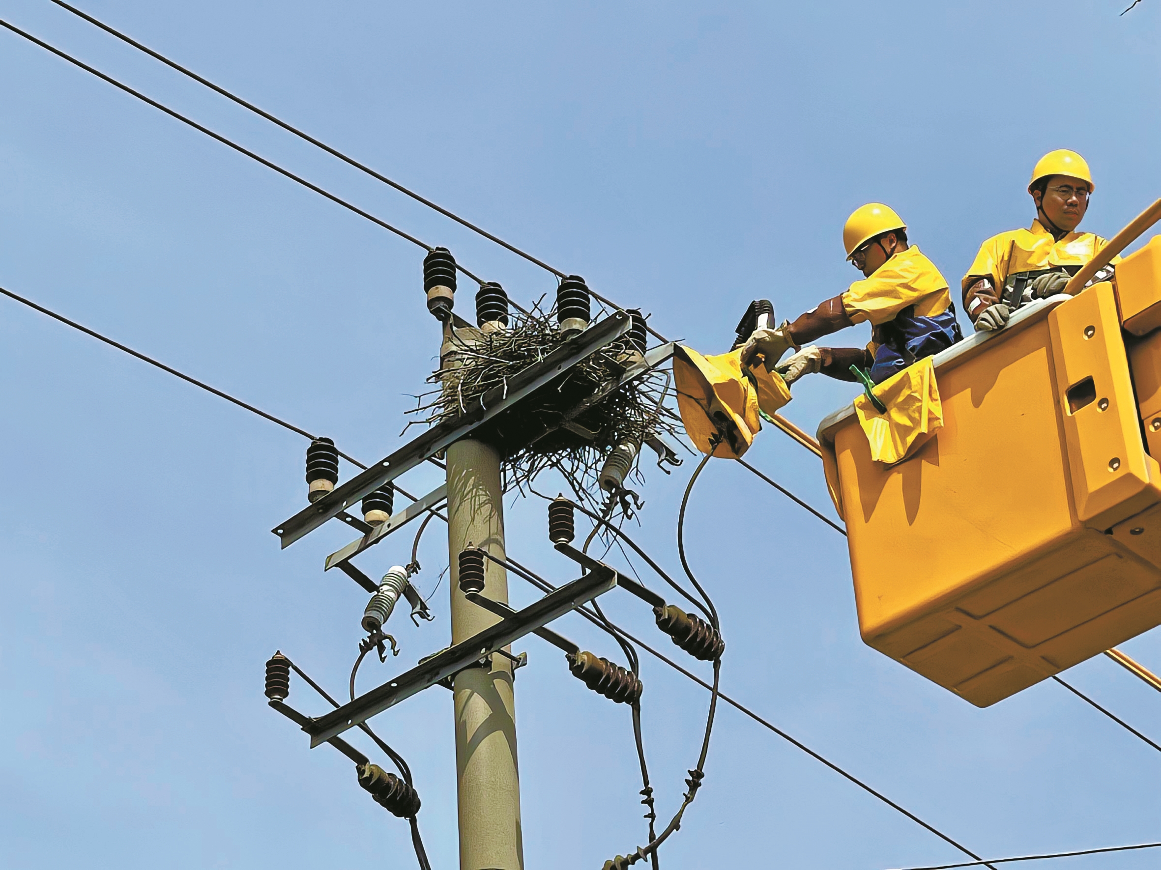 “每年这个时候,鸟儿常在线路杆塔上‘安家’,其衔来的铁丝、树枝若是掉落,很有可能引发绝缘子闪络,从而导致短路跳闸。拆巢能避免故障,却会让雏鸟失去庇护。”朱剑明说,在当天的行动中,巡线员完整保留了鸟巢结构,还用保温材料搭建临时安置巢,并及时联系了宁波市陆生野生动物救助中心。