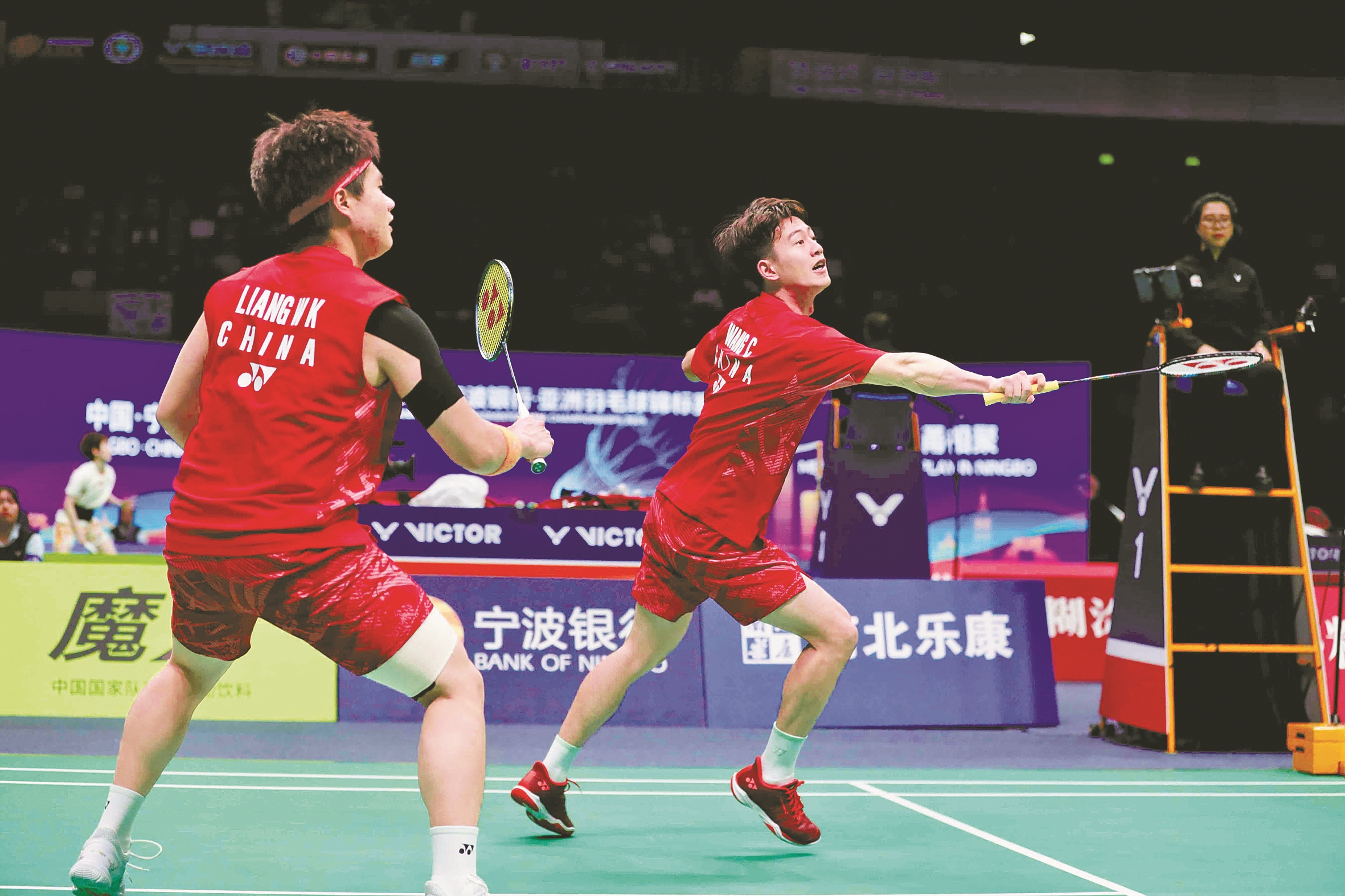 在男双比赛中,梁伟铿/王昶经过三局激战,击败马来西亚组合阿里夫/叶睿庆,进入八强。