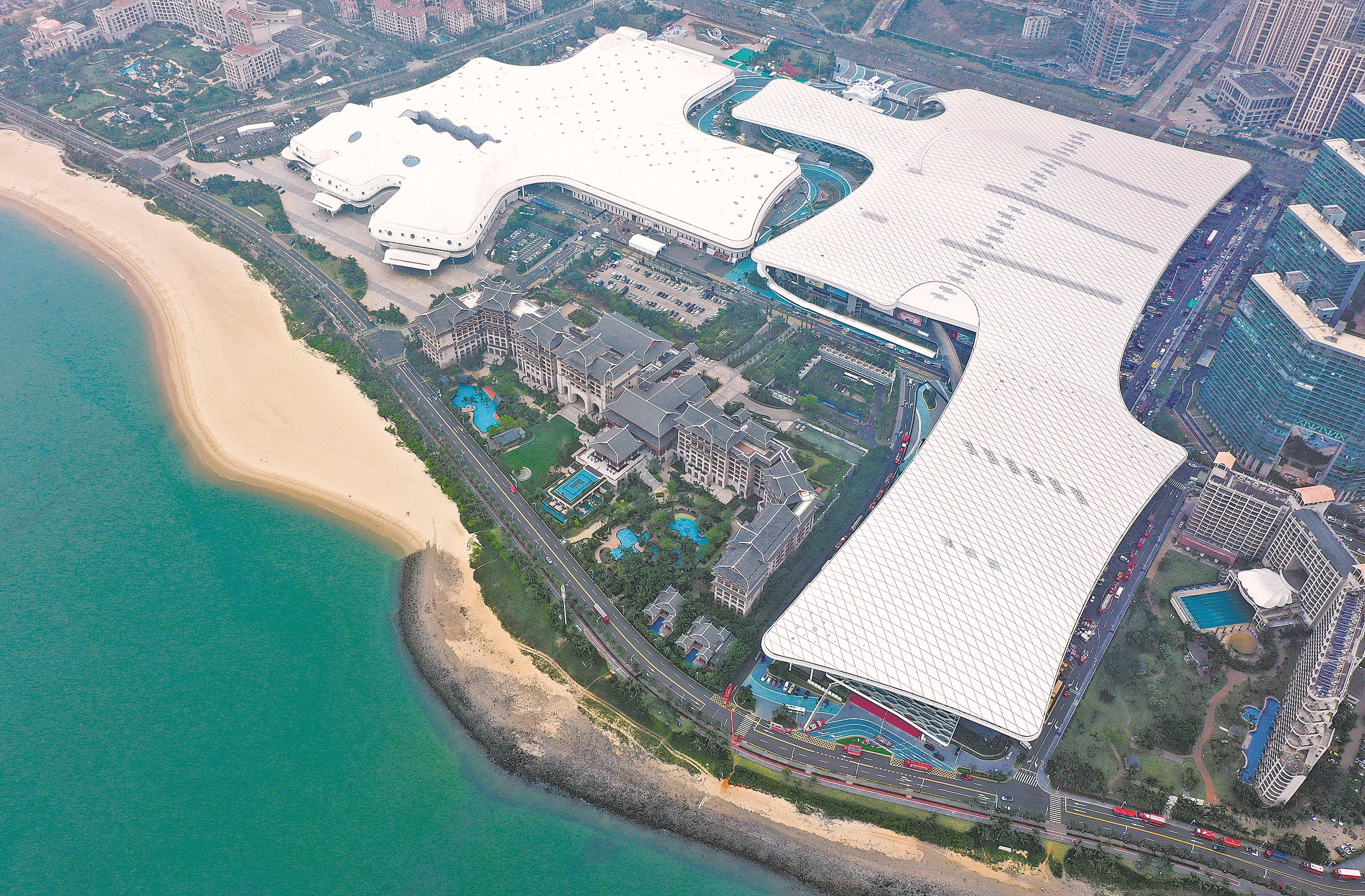 这是4月10日拍摄的第五届中国国际消费品博览会主会场海南国际会展中心(无人机照片)。