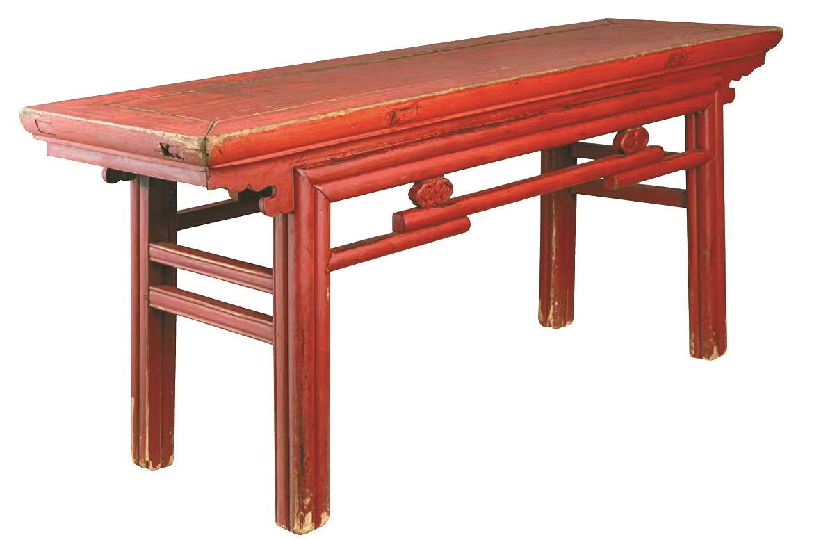 阿春有时也会来,来时都是一个人端着一条长条宽面的红凳,安静地坐在西北角的屋檐下,不言不语。戏院看门的余大爷,有时会嚷上一句:阿春来一曲。阿春很听话,缓缓起身,站在红凳前唱上一曲梅派京戏《贵妃醉酒》的“海岛冰轮初转腾”。当年,三十好几的阿春是剧团的青衣,身材匀称,腿长腰细,目含梨花,声如莺啼。那时候,还是小孩的我,却好奇那条凳子的好看,整凳素红,马蹄脚利索,面板下方四周横档中间,各镶嵌着两只金光闪闪的石榴形吉子。还是余大爷告诉我的,长条红凳的名字叫春凳。