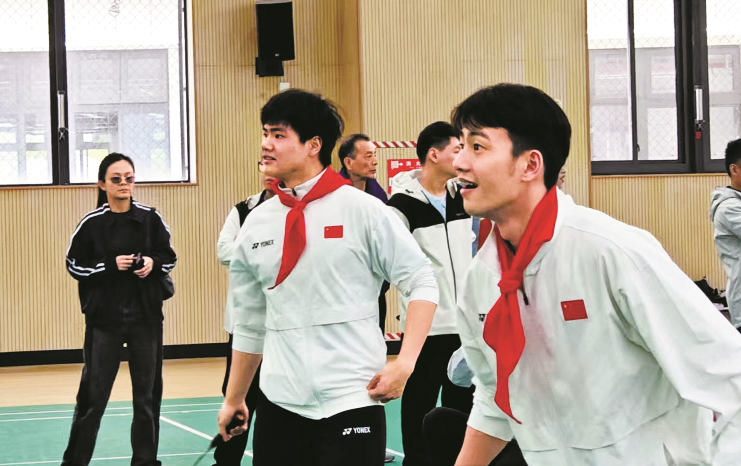 当天上午,江北中心学校举行“中国国家羽毛球运动员进校园”活动。这是一所浙江省羽毛球传统项目学校,多年来,为省队、国家队输送了吕学舟、吕柔皓和周新宇等优秀的羽毛球队员。
