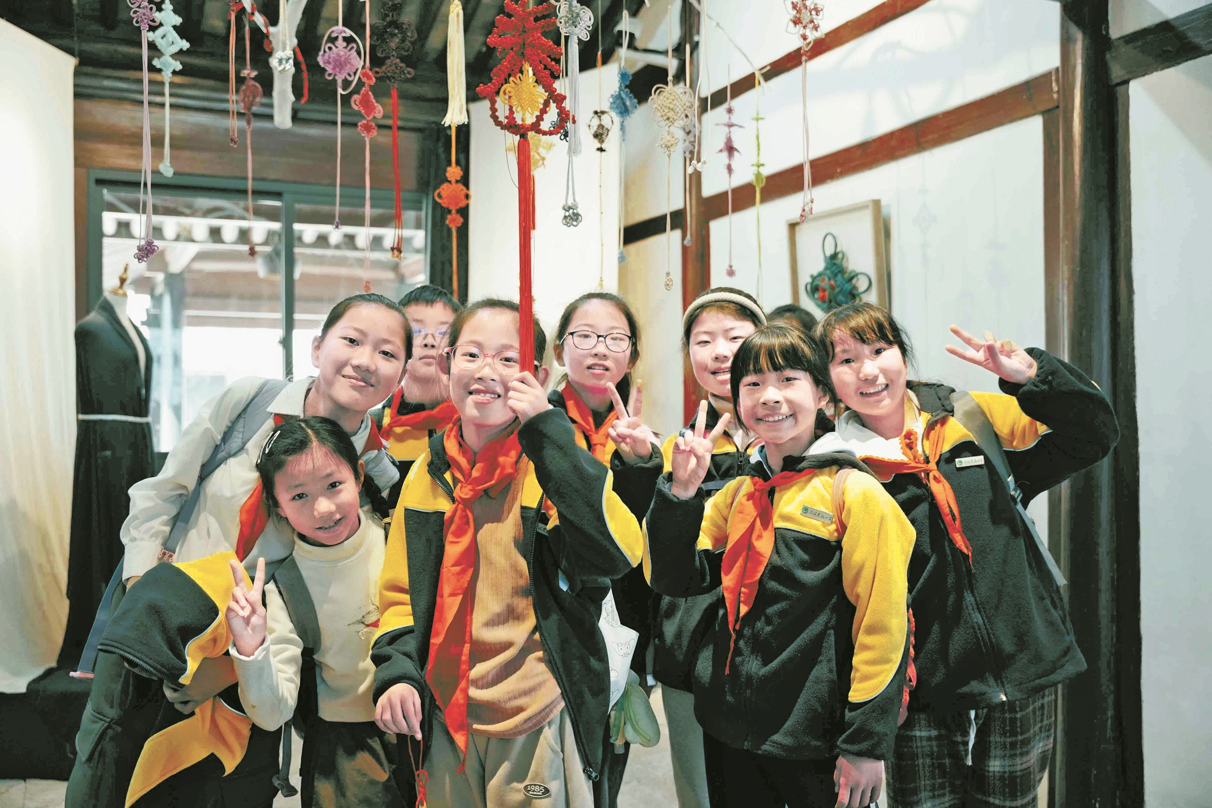 前日,超500名学子走进慈城古县城景区,参观县衙、孔庙、校士馆、冯岳彩绘台门等景点,还体验了打年糕、扎染、编织中国结等传统手工活动。