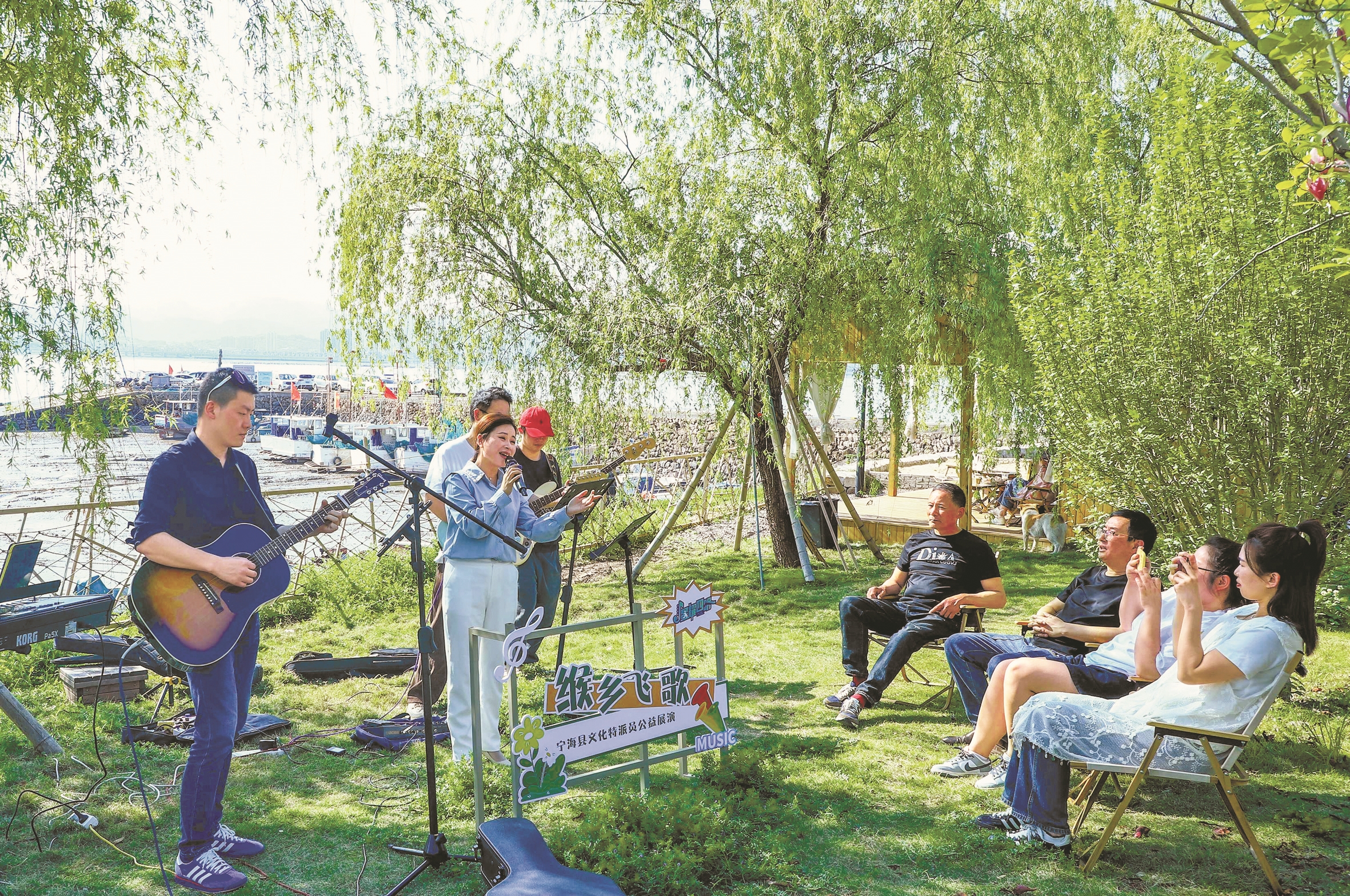 面朝大海,春暖花开。昨天,一场融合了自然风光与人文艺术的“春之歌”音乐会,在宁海县强蛟镇加爵科村日落码头游步道举行,吸引了村民和游客驻足观赏。