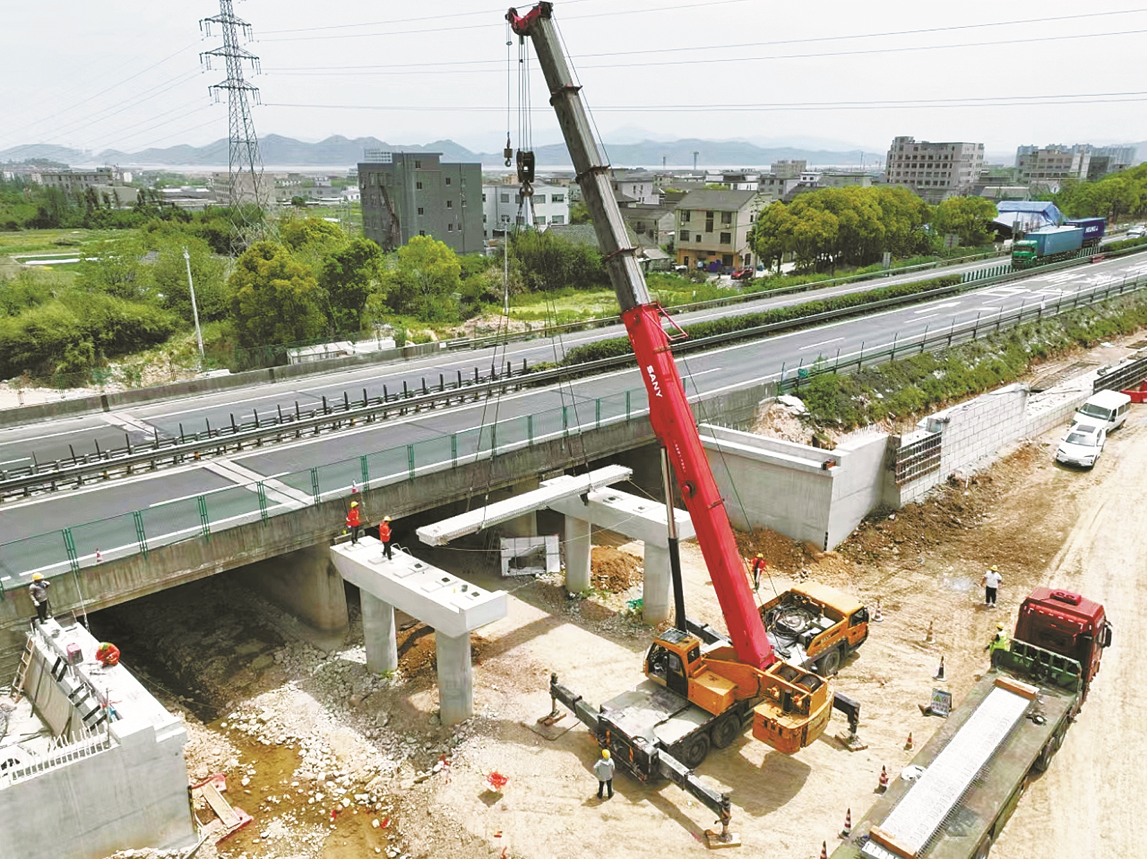 前日,随着首片预制梁板平稳精准地落在张家庄小桥右幅桥墩盖梁上,甬台温高速改扩建宁波南段TJ-2标项目进入上部结构施工阶段。