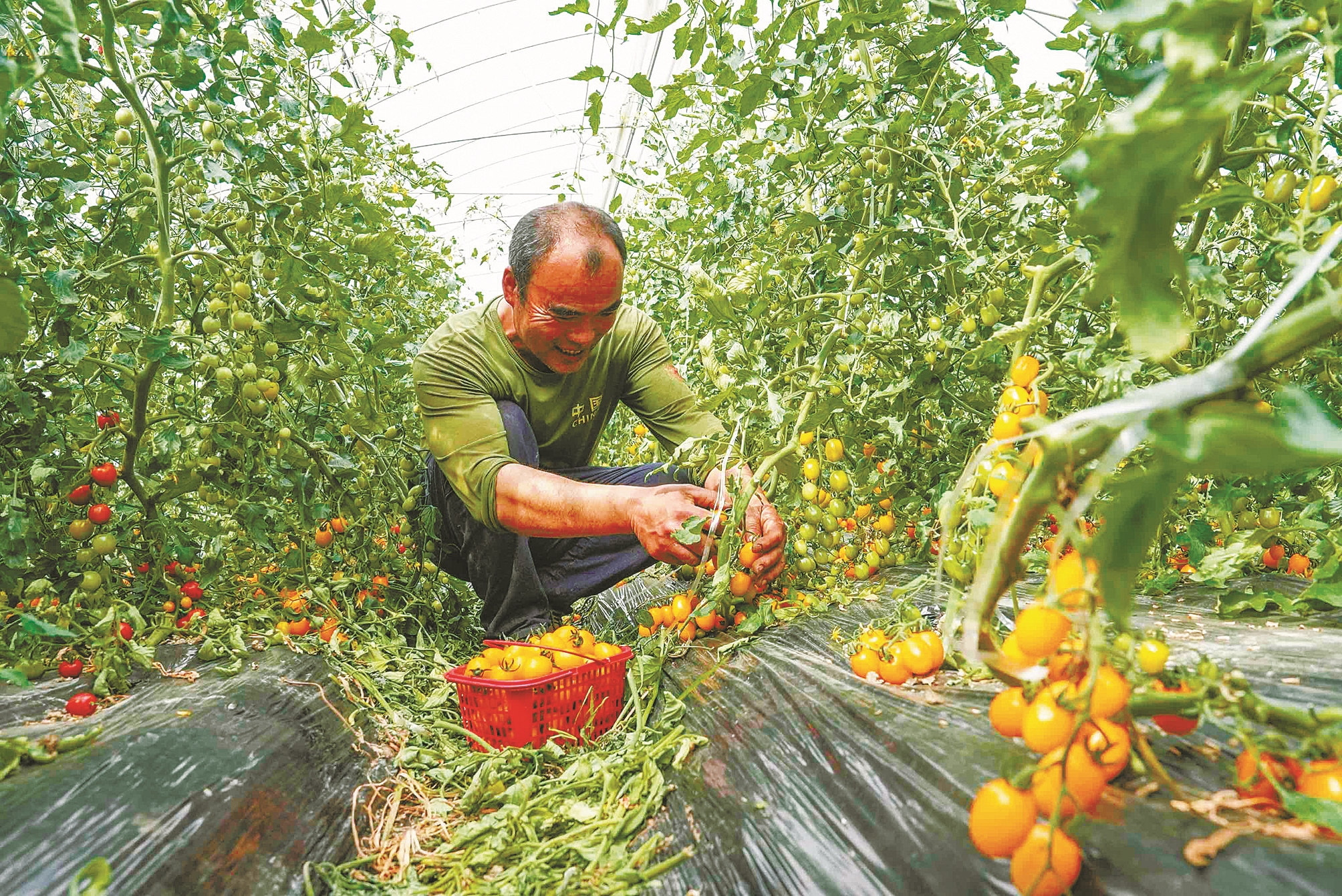 图为农户正在采摘樱桃番茄。(陈结生 方舟 方辰杰 文/摄)