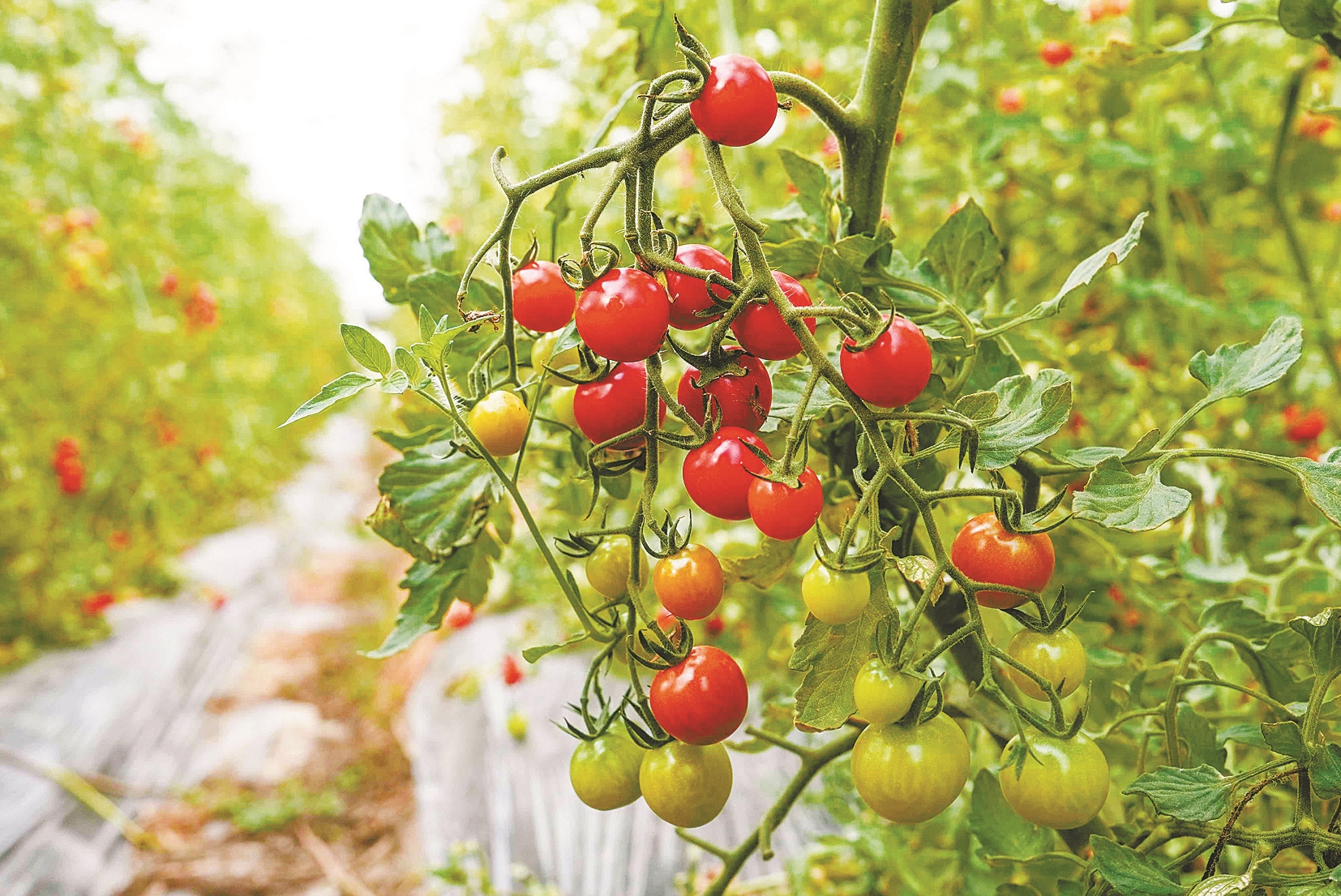 随着气温回升,樱桃番茄进入生长黄金期。昨天,在江北慈城至诚家庭农场,记者看到温室大棚内藤蔓缠绕,一串串或红或黄的樱桃番茄挂满枝头,空气中飘散着清新的果香。