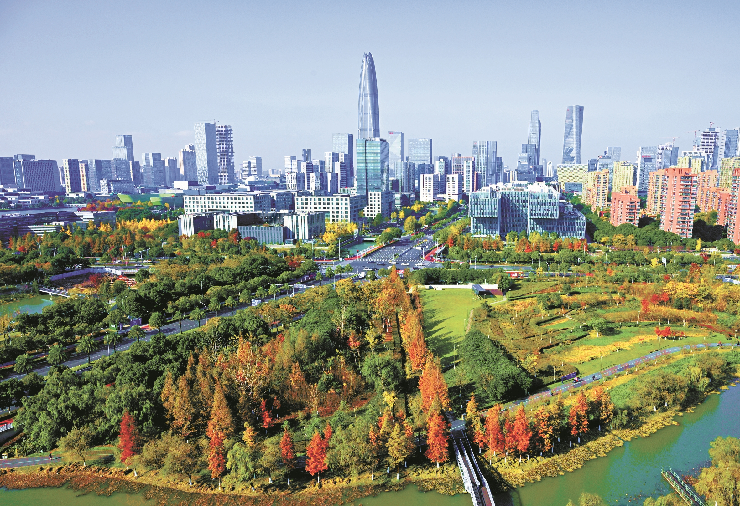 宁波东部新城生态走廊已成为城市绿色发展的亮丽名片。长廊沿线,绿树葱郁、鲜花烂漫,为市民编织出一幅美丽的生态画卷。 (唐严 摄)