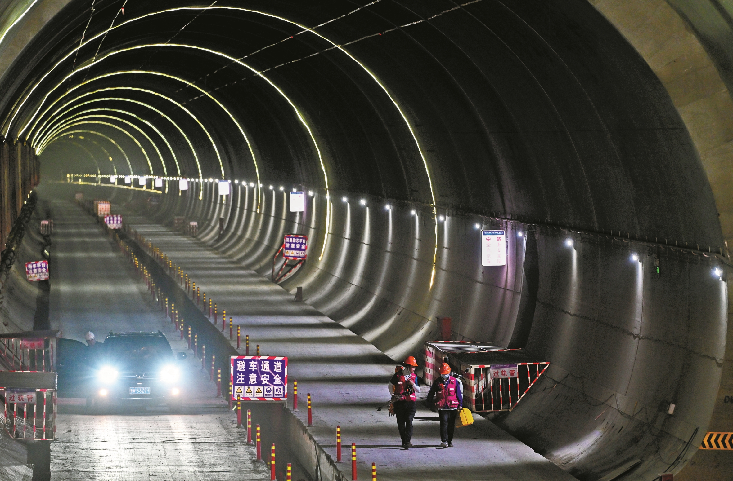 4月28日,在重庆市大足区,工作人员在磨盘山隧道内施工。