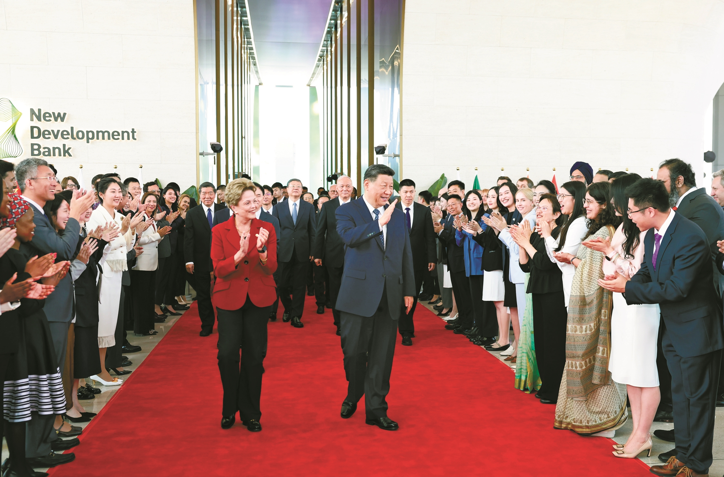 习近平抵达时,罗塞芙率新开发银行4位副行长及员工热情迎接。