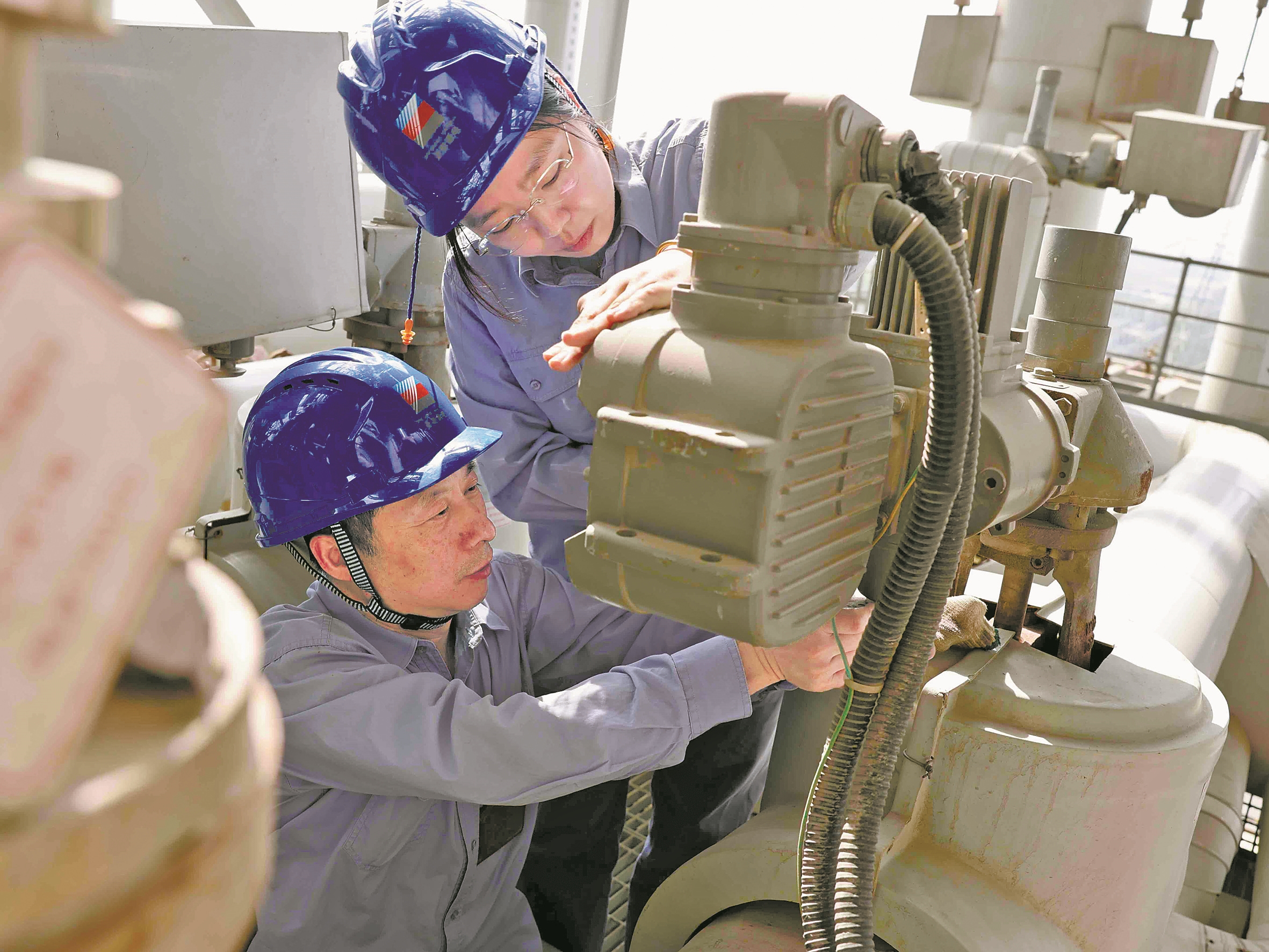 昨日,浙江浙能镇海发电有限责任公司工作人员奏响一曲守护万家灯火的劳动赞歌。 (徐诚 佟圆圆 摄)