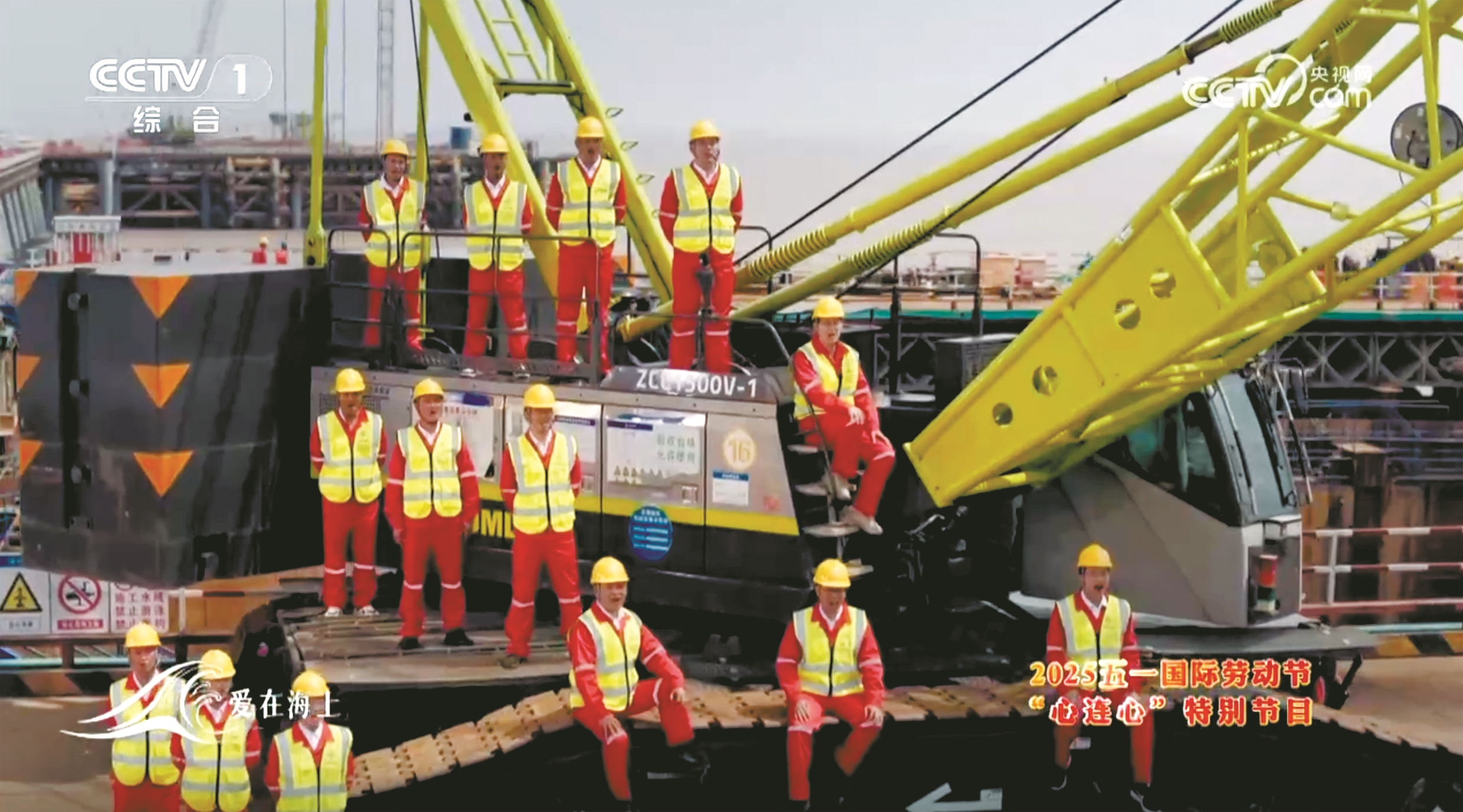 短短5天MV拍摄期内,工友们在不耽误工期的前提下化身“演员”,用质朴的镜头语言还原了“与风浪为伴,以星月引航”的日常:绑扎钢筋、操作塔吊、深夜值守……