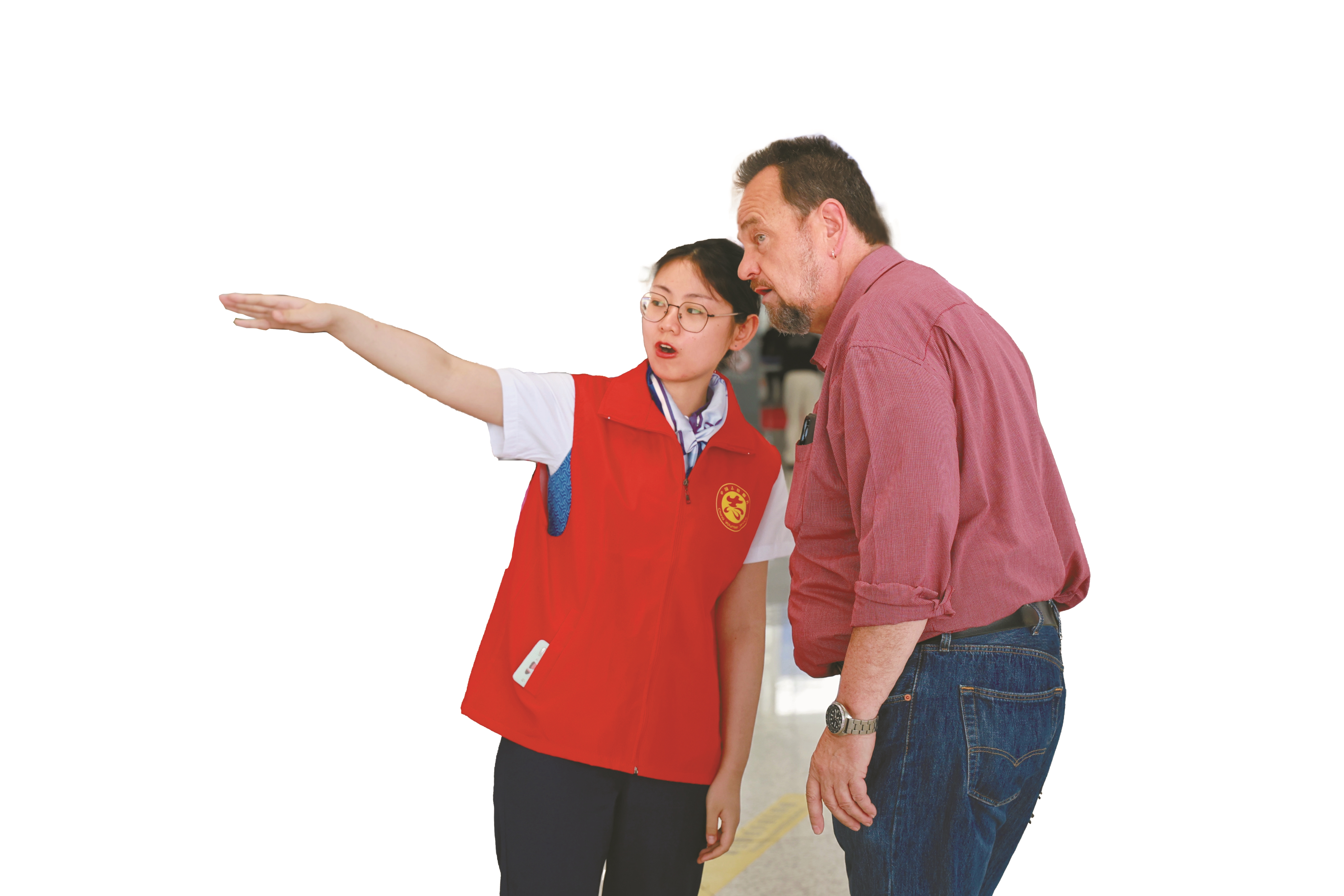 这种敏锐在前几天就派上了用场。当时正在做志愿者的胡恒力,目光突然被人群中一个特殊身影吸引:一名坐在轮椅上的旅客双臂固定着支具,眉头紧锁,眼神透着焦虑。她立即快步上前,半蹲下身轻声询问。原来这名双手骨折的旅客因体内金属植入物需提前联系航空公司申请特殊服务。