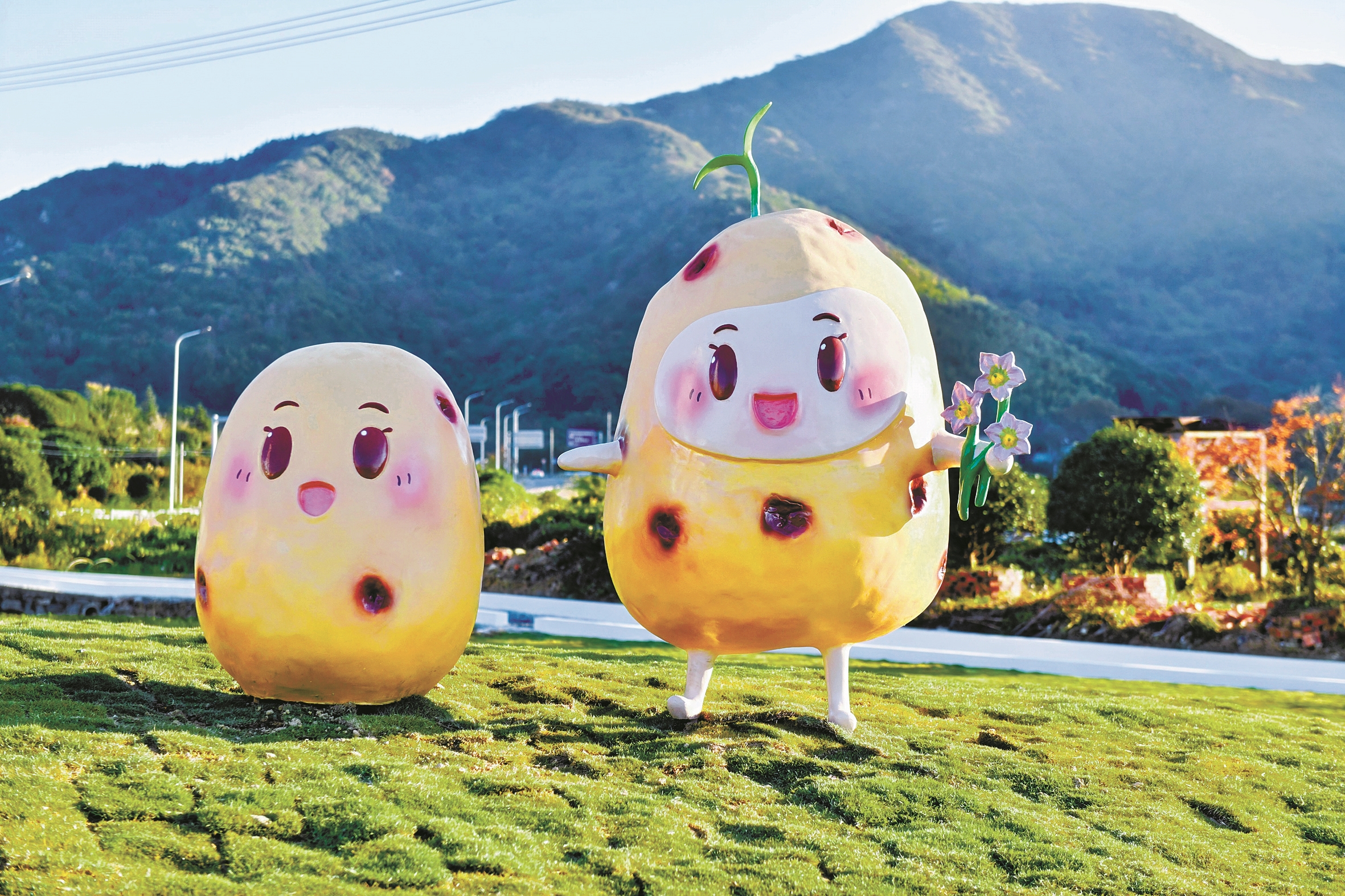 如今,三山村村口、土豆公园和大樟树下,“双狮土豆”IP形象成为热门打卡地。