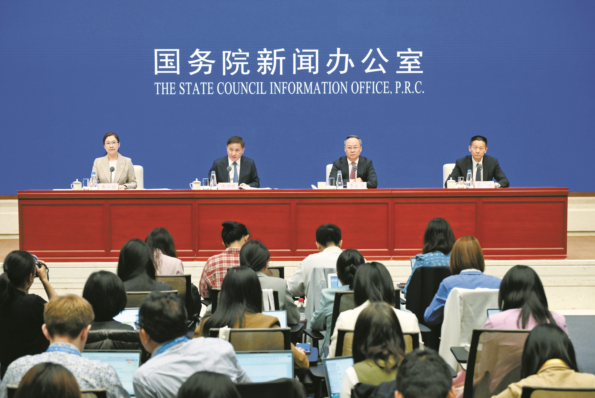 5月7日,国务院新闻办公室在北京举行新闻发布会,中国人民银行行长潘功胜、国家金融监管总局局长李云泽、中国证监会主席吴清介绍“一揽子金融政策支持稳市场稳预期”有关情况,并答记者问。 (新华社发)