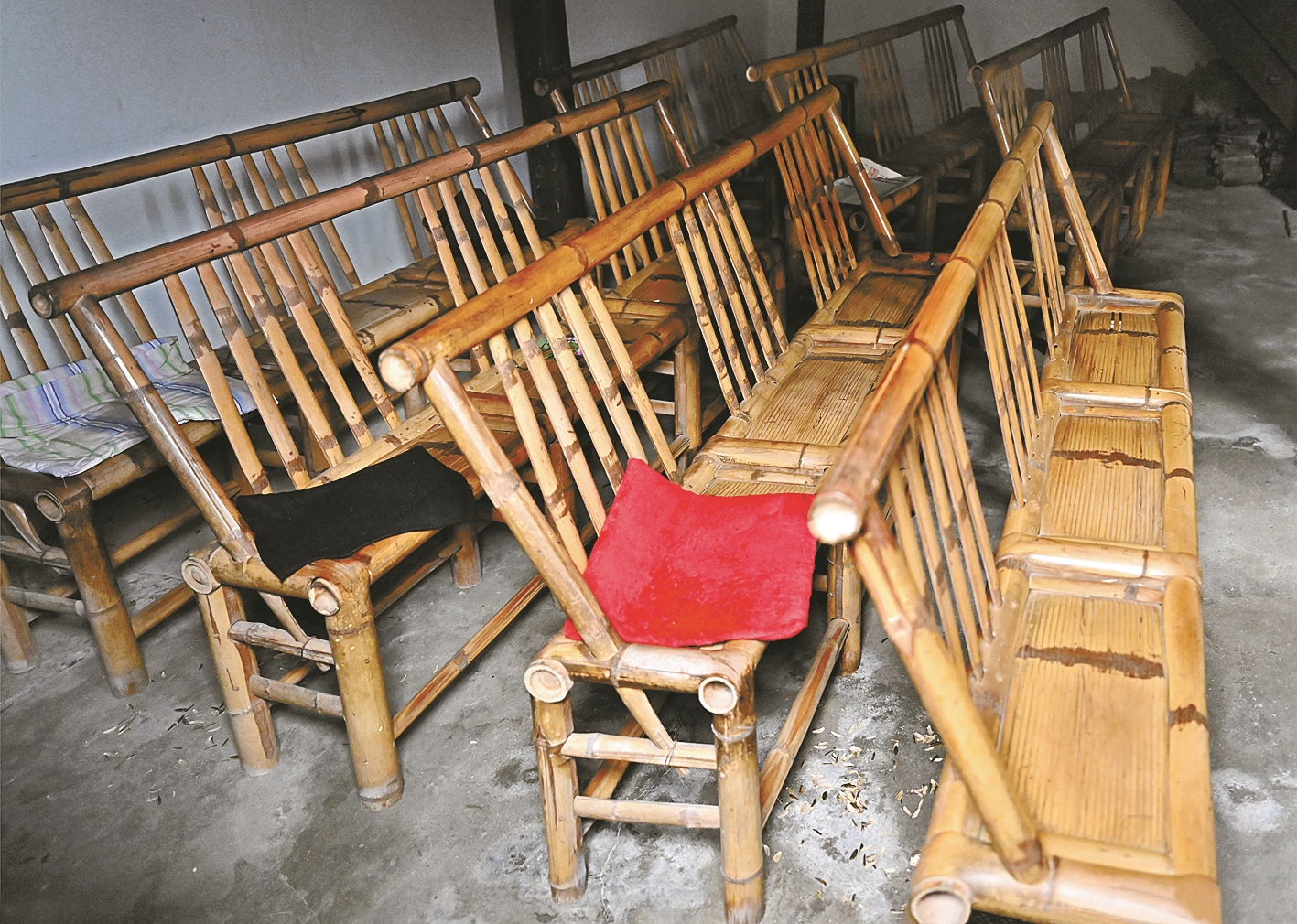 这些竹椅大多产自四明山区。过去常见山民用加长的手拉车拉着满车的竹椅走街串巷,现在更有山民到平原地区开起店铺,自产自销。慈溪市逍林镇樟新北路上就有这样的一家竹椅店。