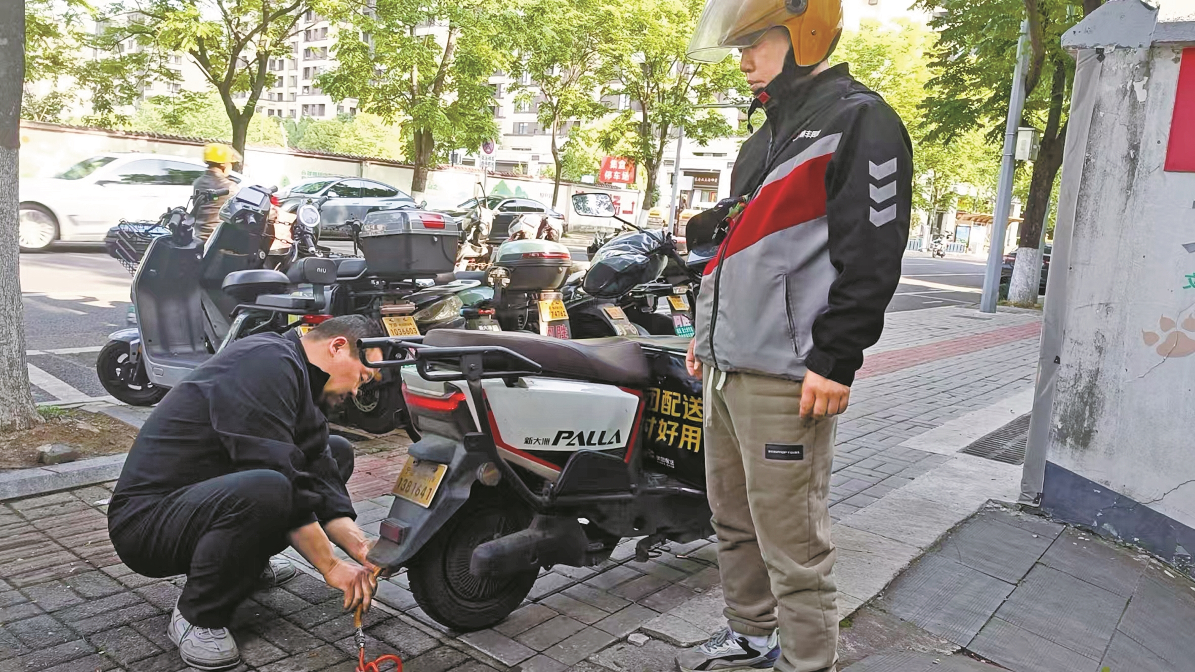 叶苗胜看到满头大汗、焦急万分的王佳,没等他开口,便迅速接过车子,安抚道:“别急,别急,先骑我的车,别误了订单!”