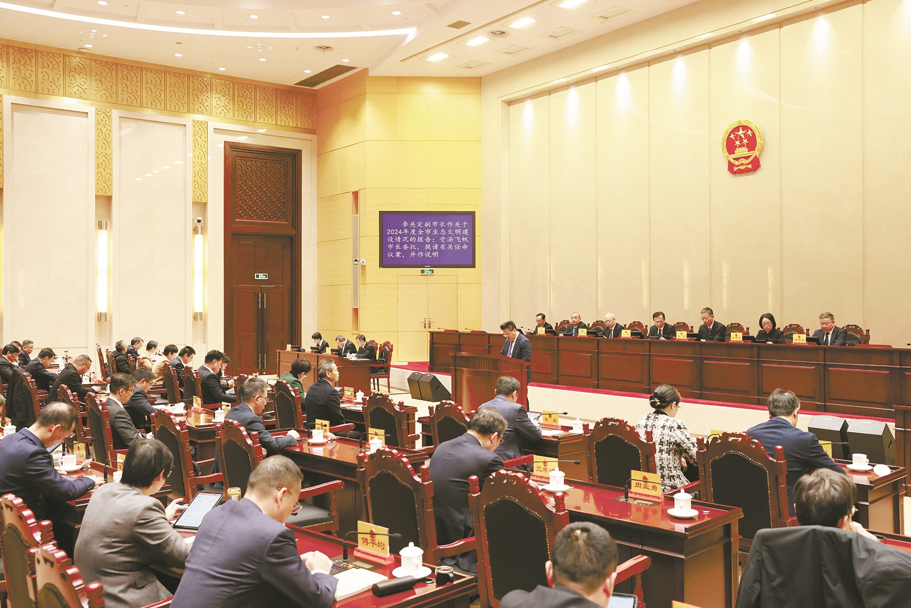 这是3月20日下午举行的市十六届人大常委会第二十四次会议,听取和审议2024年度全市生态文明建设情况报告“专题询问”环节的一个场景。