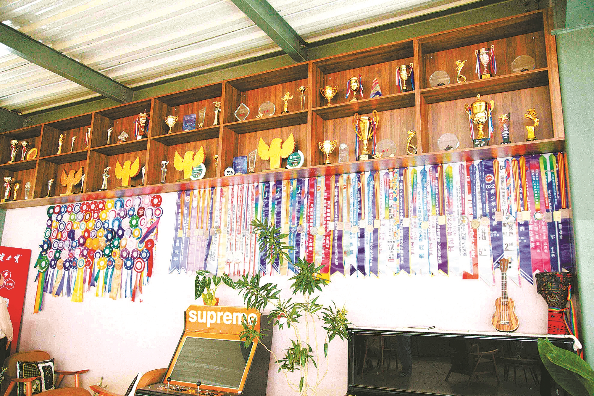 曾经,马场最吸引尤彦贺的并不是骑马,而是周围原生态的环境。“当时我更愿意去马场旁边抓昆虫,或者去河里摸鱼。”尤彦贺说,“小时候胆子小,觉得骑马很危险,后来妈妈把我赶上马,一点点帮我克服了恐惧。”
