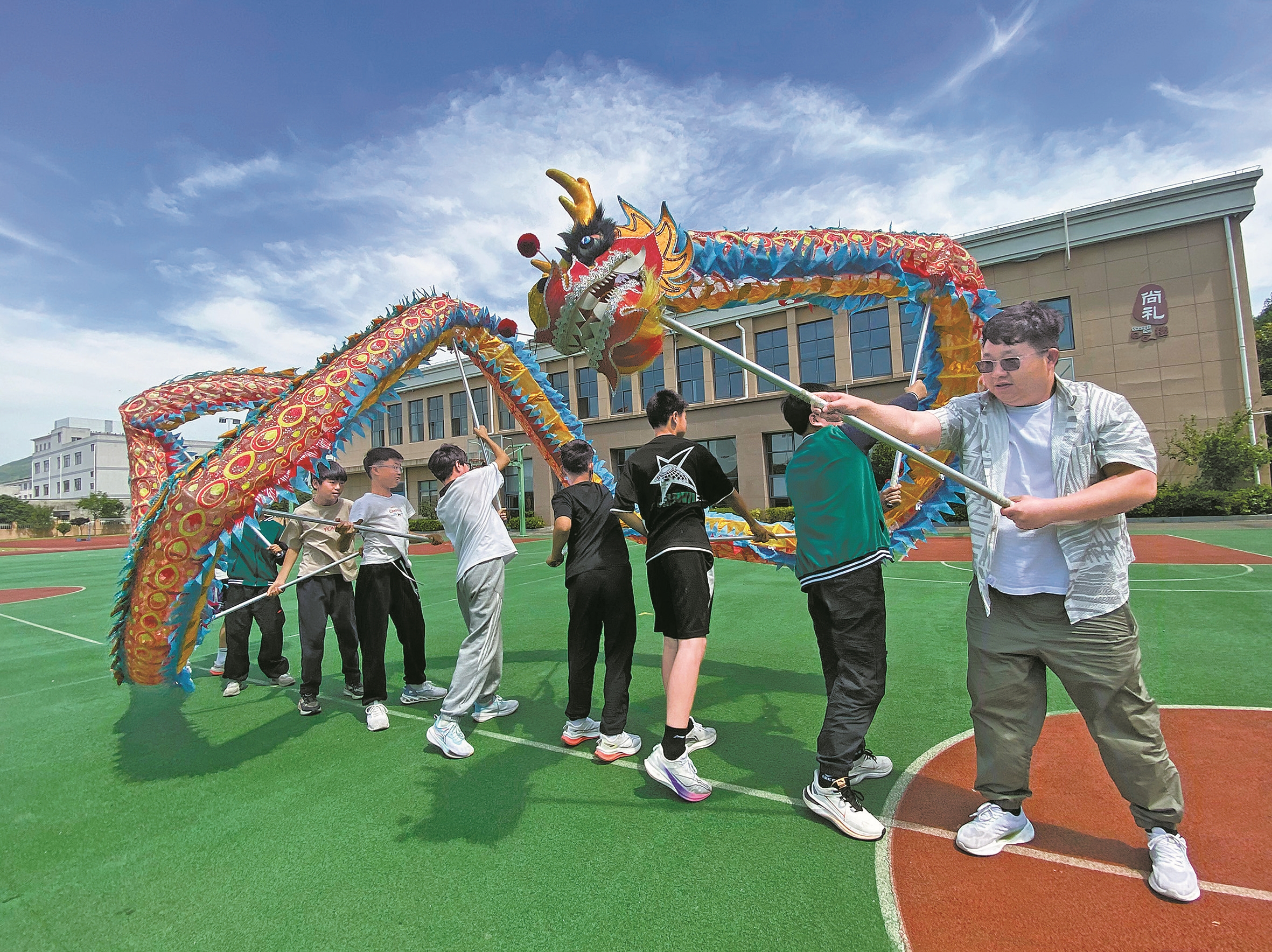 “陈行国师傅是奉化布龙的国家级非遗代表性传承人,我也是他的一名徒弟。”樊雷波介绍,在他和陈亮亮的指导下,奉化尚田中心小学学生与省里其他舞龙少年切磋过招,并“舞”出累累硕果——在两届省青少年(儿童)龙狮锦标赛上获得3个一等奖、1个三等奖;获市首届中小学传统体育舞龙项目竞速舞龙一等奖……