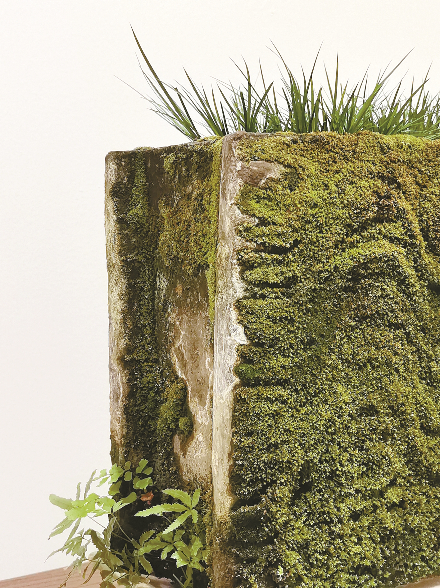 几十盆菖蒲与奇石、砖瓦、明式家具等从画中走出,融合到现实的展览厅,刚劲与灵秀并存,构造出一个文人气息浓郁的场域,并和户外的山林景观相映成趣。