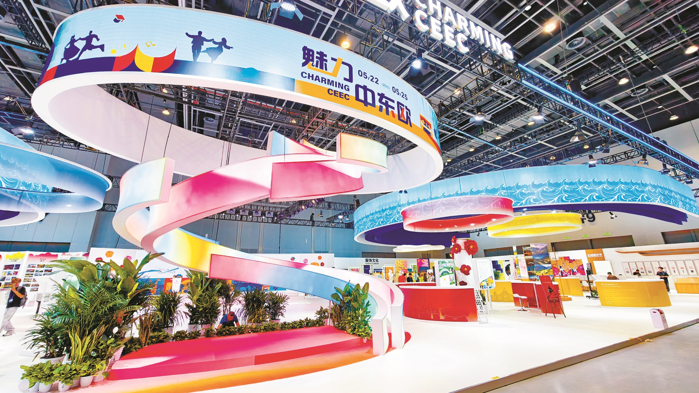 5月22日至25日,第四届中国—中东欧国家博览会暨国际消费品博览会在宁波举行。400多家展商、8000多种中东欧特色商品在2万平方米的中东欧展区集中亮相。图为记者昨天在探馆时看到,展区布置就绪,静待盛会“花”开时。(唐严 摄)