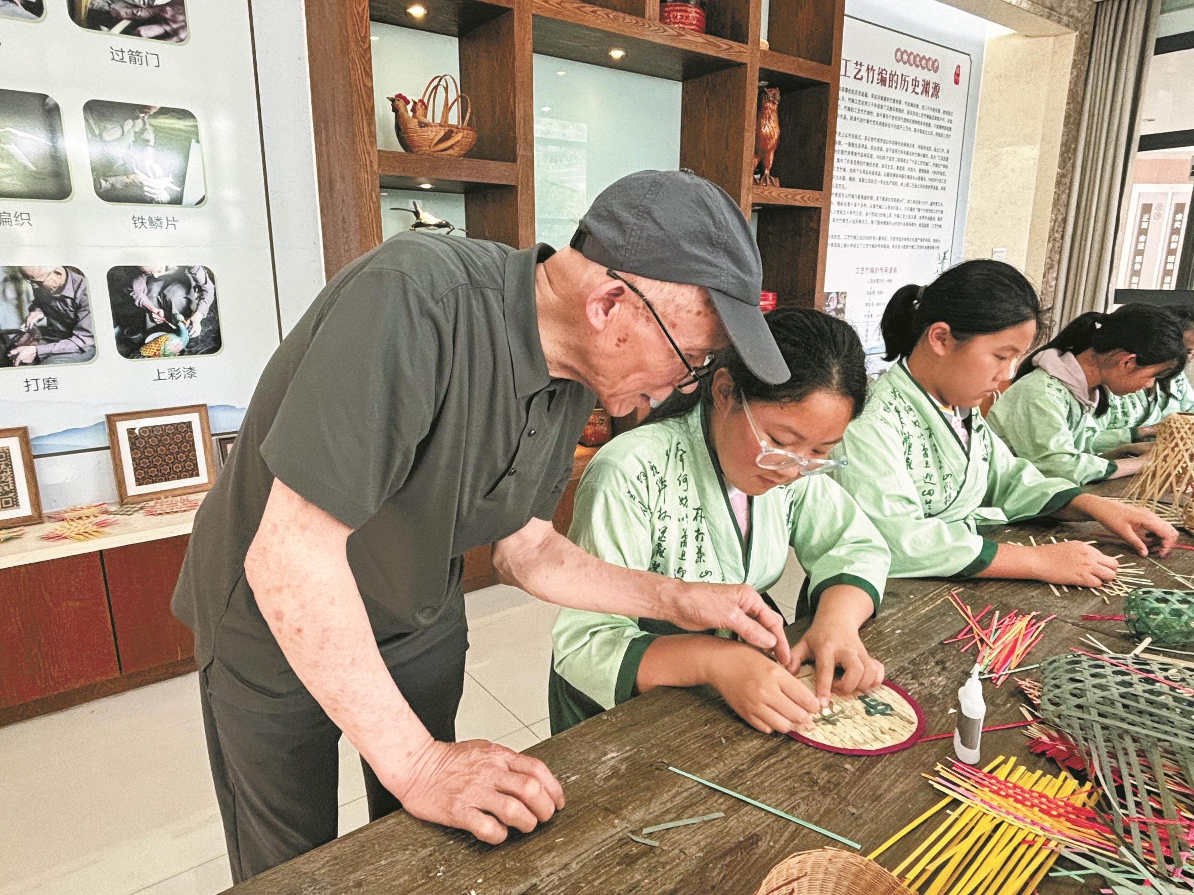 “竹编让我开拓了视野、学会了持之以恒。”5年级学生王雨萱展示着自己编织的“竹节笔筒”,“编竹子时老师说‘一节复一节,千枝攒万叶’,让我明白成长需要慢慢来,现在我已能当小老师教弟弟编竹蜻蜓了。”