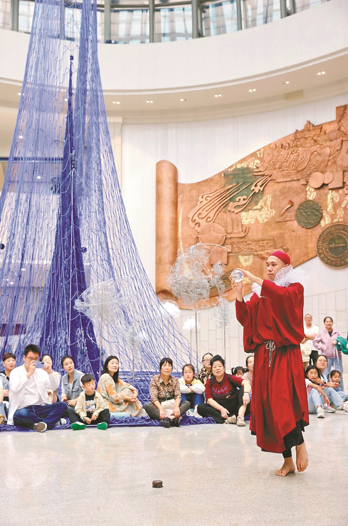 以“生活周”的方式打开博物馆,用生动有趣的文旅新场景吸引人们,特别是年轻人的关注,是主办者的初衷。于是,今年的港口生活周上,围绕水下考古展厅和潜水艇展开的沉浸式剧本解谜、观涌·海上音乐会、集装箱文旅盲盒、流动艺术演出、汇集潮品和文创产品的市集、“海洋减塑”行动甚至匹克球体验等等,一一上演。它们营造出浓烈的快乐氛围,也倡导着健康时尚的生活方式,当然,博物馆本身也收获了“流量”。