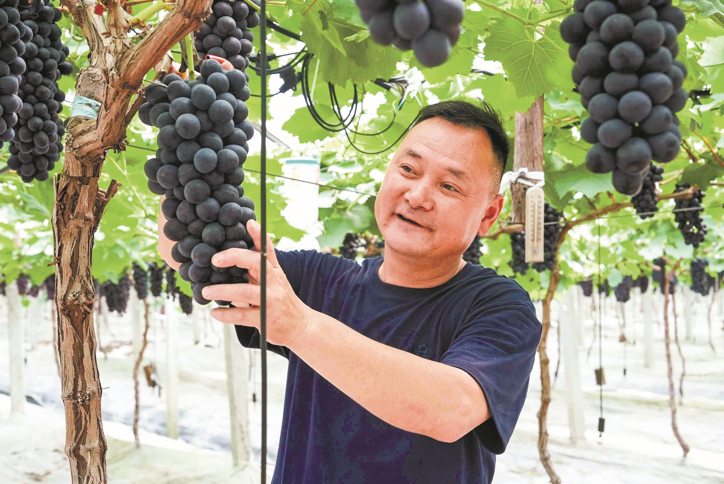水果种植园区负责人陈海栋采摘葡萄。(陈结生 摄)