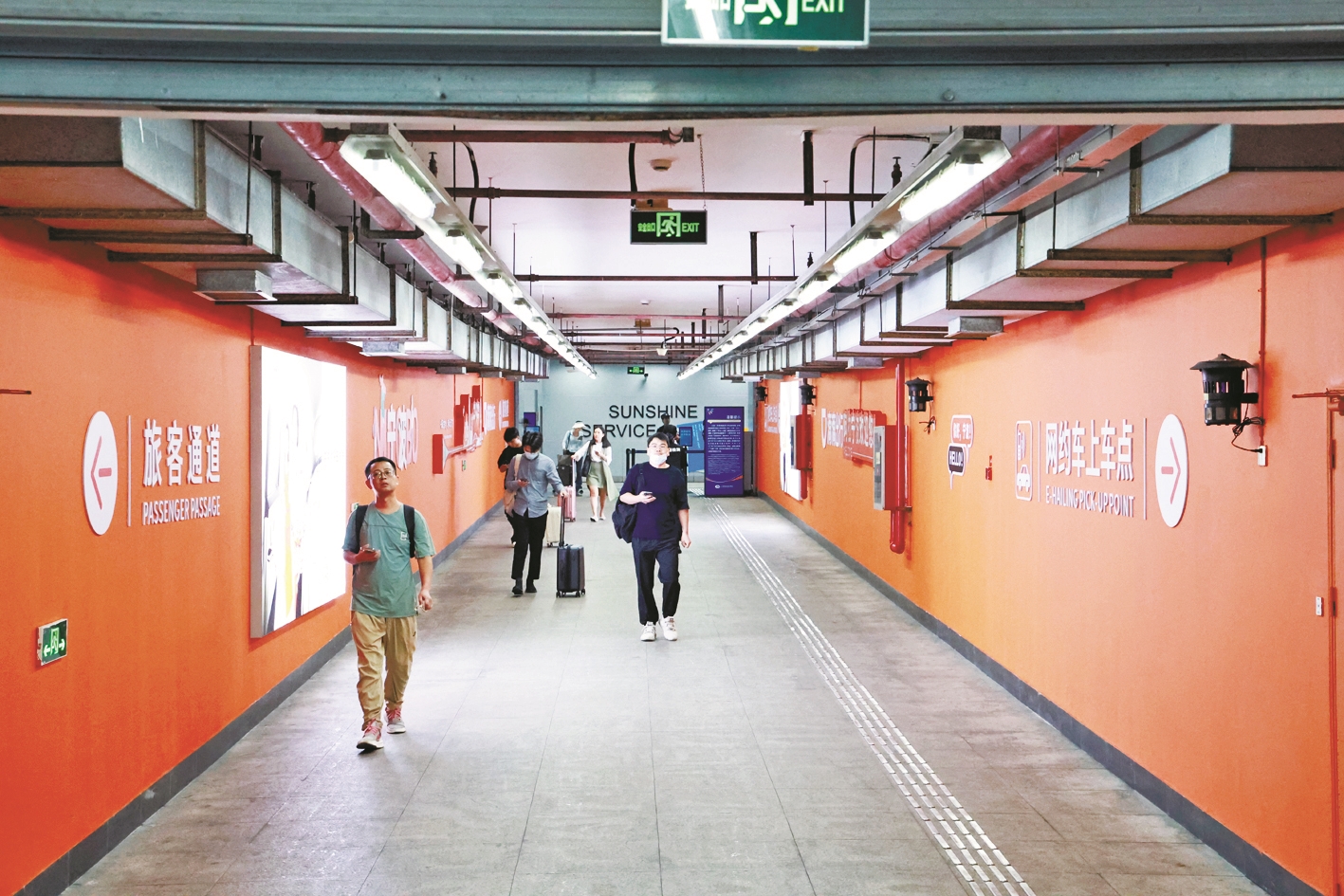 新的上客专区直通航站楼,旅客从到达大厅出发,顺着地面箭头、标识标牌指引即可直达上客专区,从下机到上车全程无需接触室外环境。旅客按照指引,最快1分钟便能到达上车点,全程不到百米,真正实现了“出舱门、进车门”的无缝衔接。