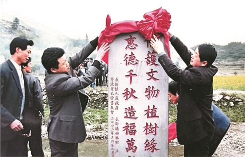 2025年3月15日,春雨淅沥,天行书友会在海曙区半山村举行“天行文旅林”揭碑仪式,并植下30棵银杏树。这是书友会的第五次立碑活动,首次将文化地标建设与生态保护相结合,为乡村文旅发展注入文化根脉,见证着书友会对地域文化保护的不懈坚持。