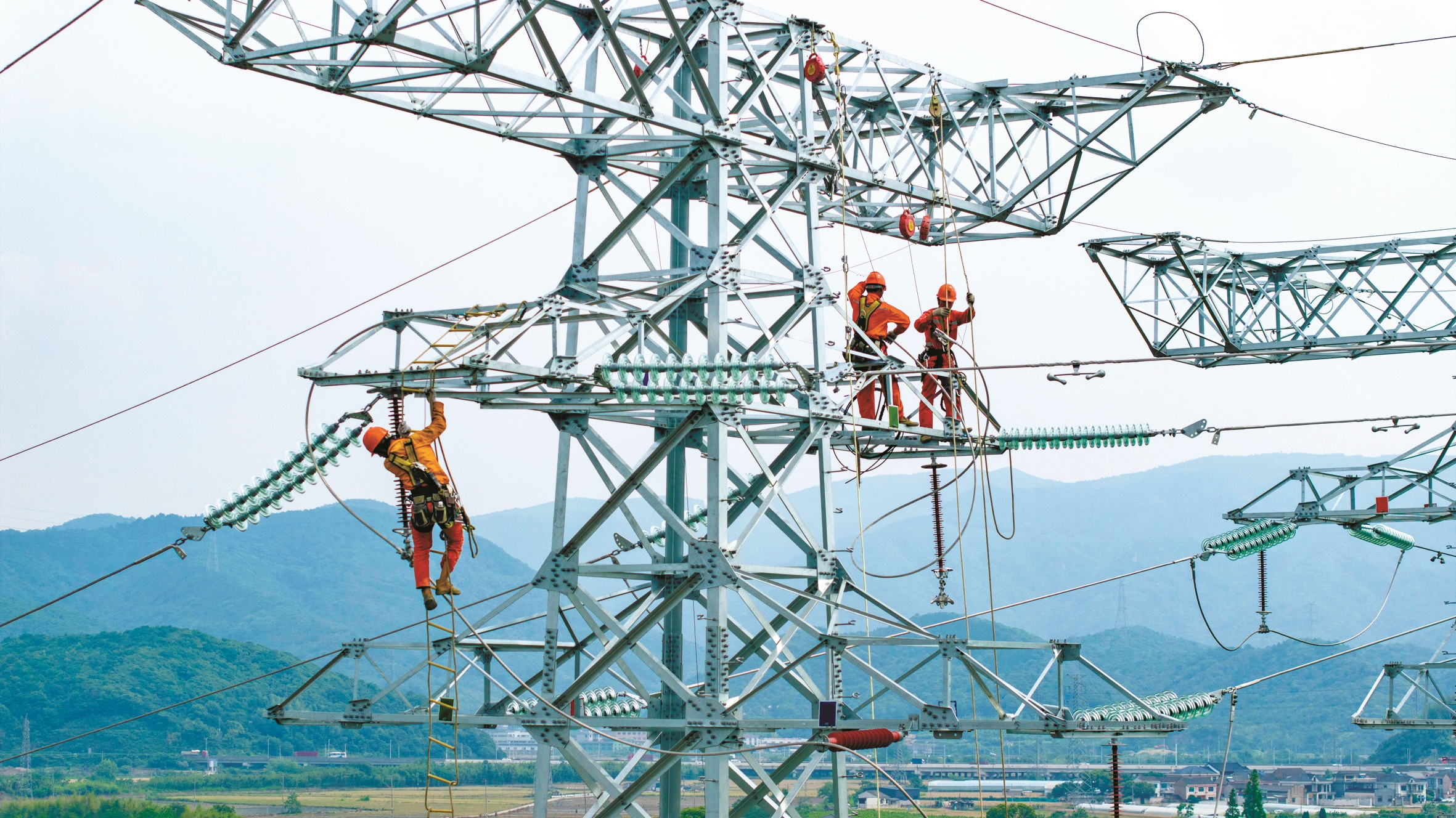 近年来,随着入驻企业数量持续增加,塘溪镇用电总量连年攀升。该工程投运后,塘溪区域电网稳定性得到显著提升,可为该镇2.35万用户持续提供稳定电力供应。图为工人在搭接送电。