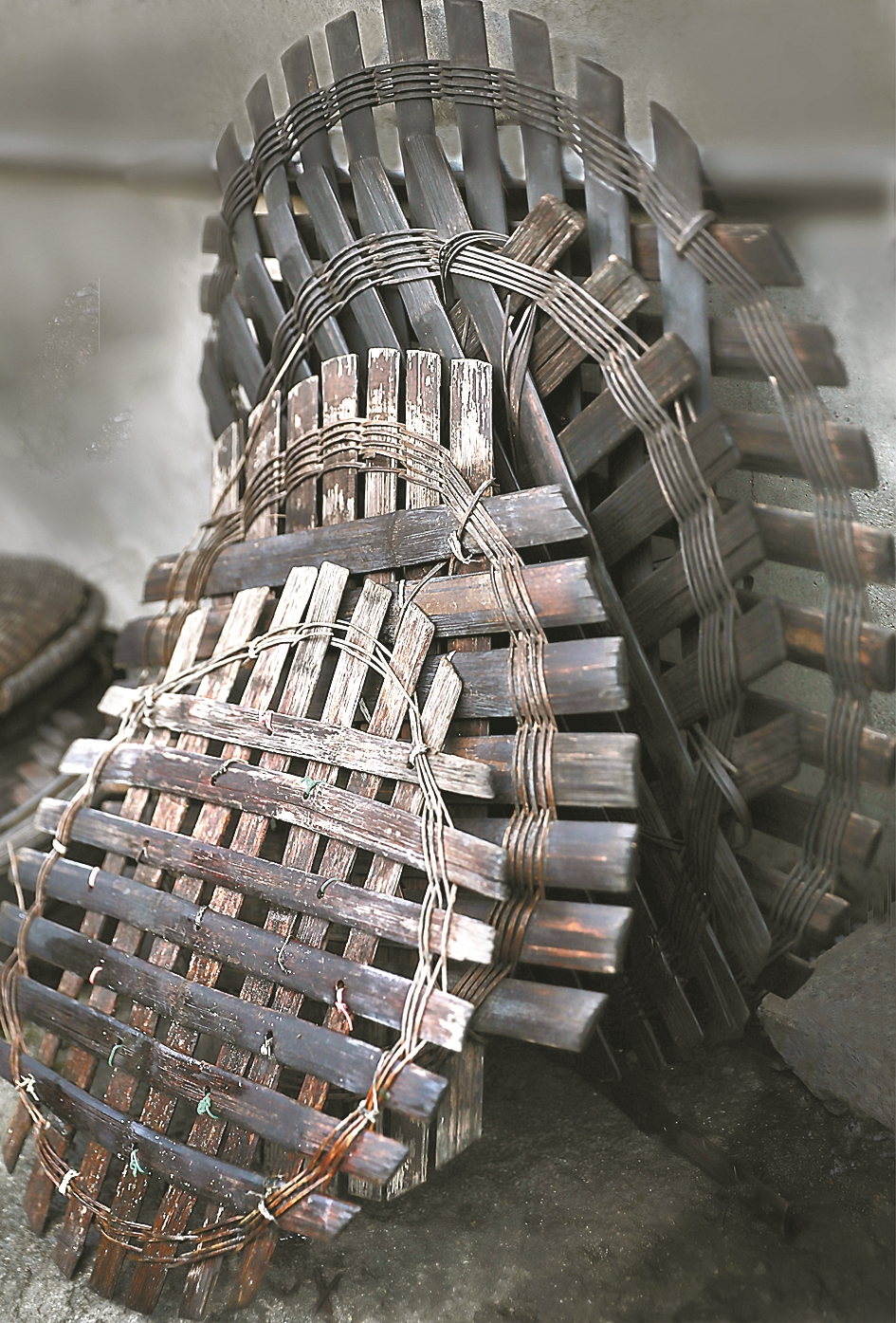 过去,宁波一带的高镬盖都是用木板箍成的,不过,我在重庆白沙古镇见到的高镬盖是用竹编制的,在河北井陉拍到的高镬盖是用秸秆打成的。