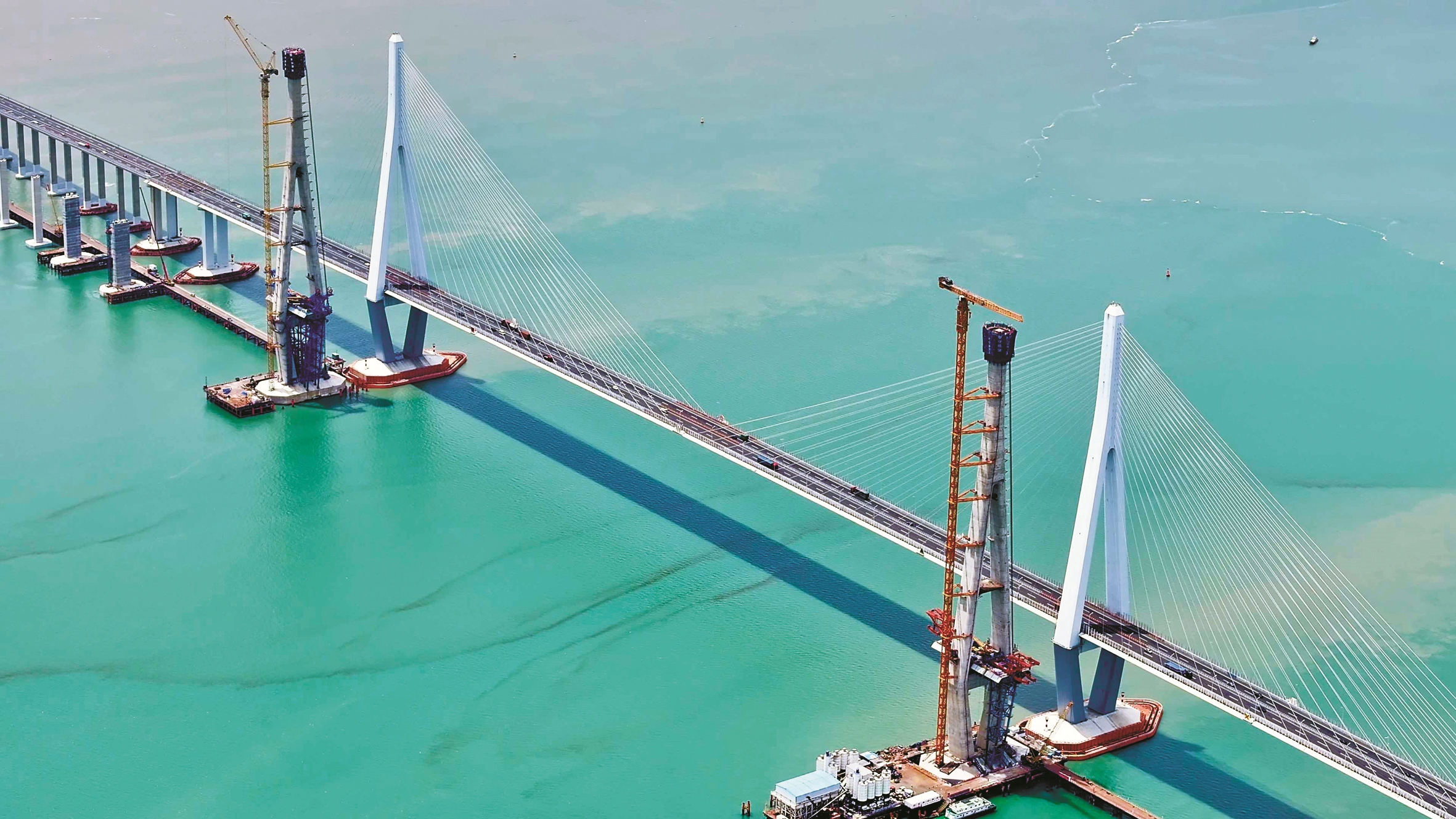 在主塔封顶施工过程中,面对海上复杂地质条件、高空强风作业等挑战,项目团队迎难而上,通过技术创新与精细管理实现突破,累计解决技术难题23项,形成2项科研工法,将传统主塔作业效率提升10%以上,比原计划提前15天完成封顶。
