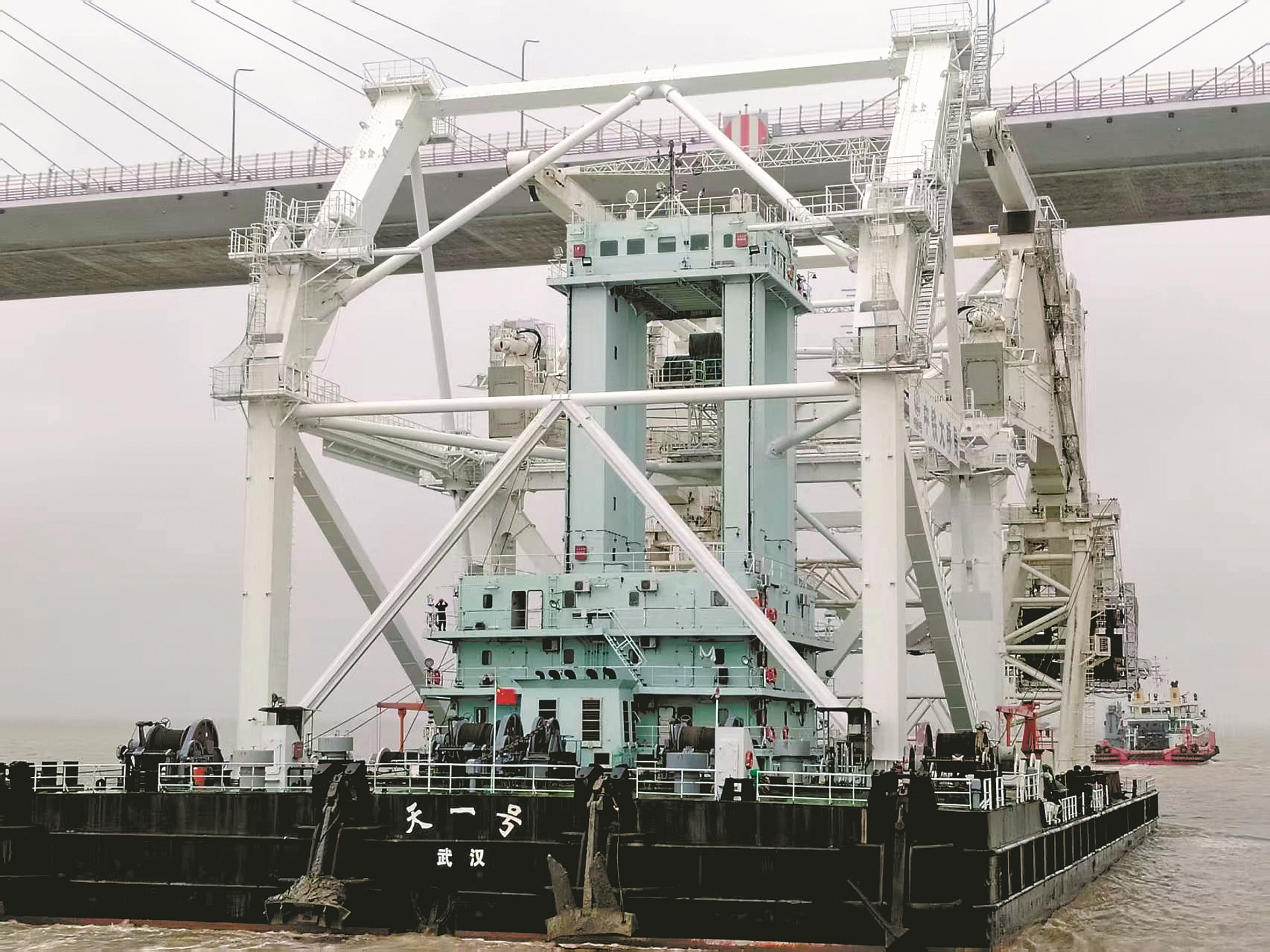 昨天,记者从中铁大桥局了解到,我国自行设计建造的千吨级起重船“天一号”完成了一项高难度任务——以倒伏起重臂架的创新实践,成功从杭州湾跨海大桥下驶过,顺利抵达通苏嘉甬高铁杭州湾跨海铁路大桥的建设工地。