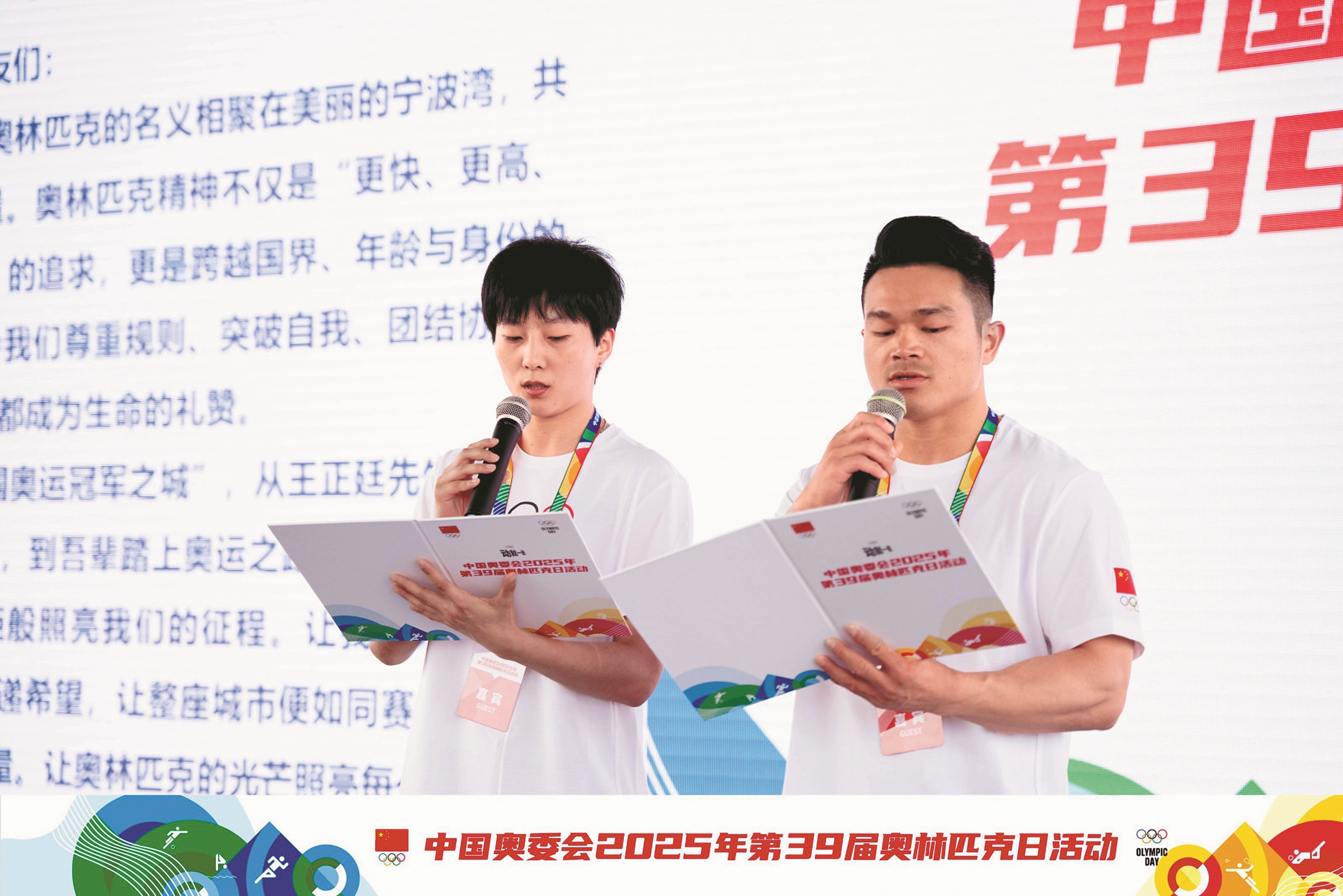 本报讯(记者龚旭琪 通讯员罗霄潇)昨天,中国奥委会2025年第39届奥林匹克日宁波分会场活动在浙江宁波湾省级旅游度假区举行,奥运会举重项目运动员石智勇、街舞项目运动员曾莹莹发出倡议,带领市民一同感受奥林匹克精神。