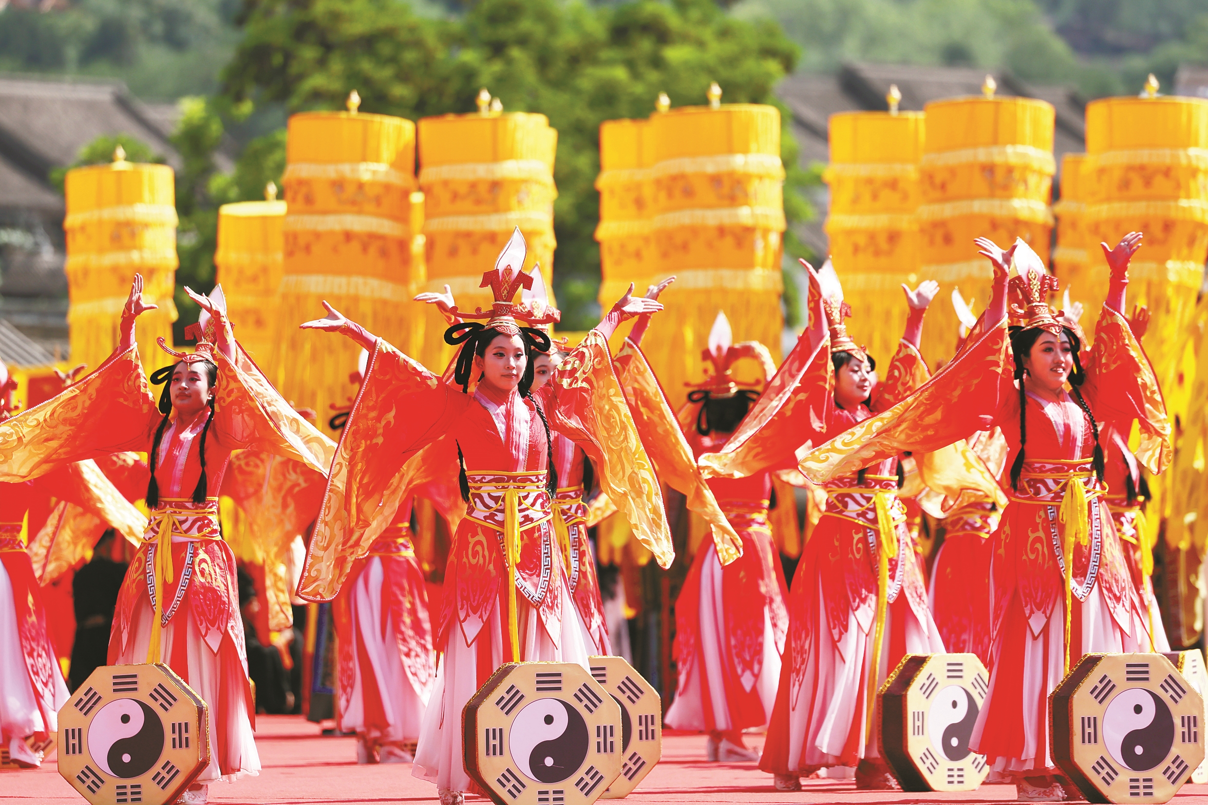 演员在公祭伏羲大典上表演乐舞告祭仪式。(新华社发)