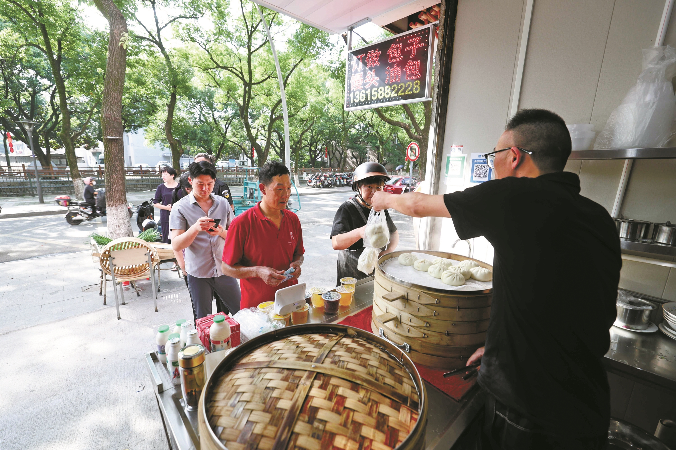 阿昌包子铺的故事,是传承与创新的故事,也是用心经营、回馈社会的故事。这家小小的包子铺,用它的美味温暖了居民的日常生活,也成了庄桥大街上一道亮丽的风景线。(陈结生 文/摄)