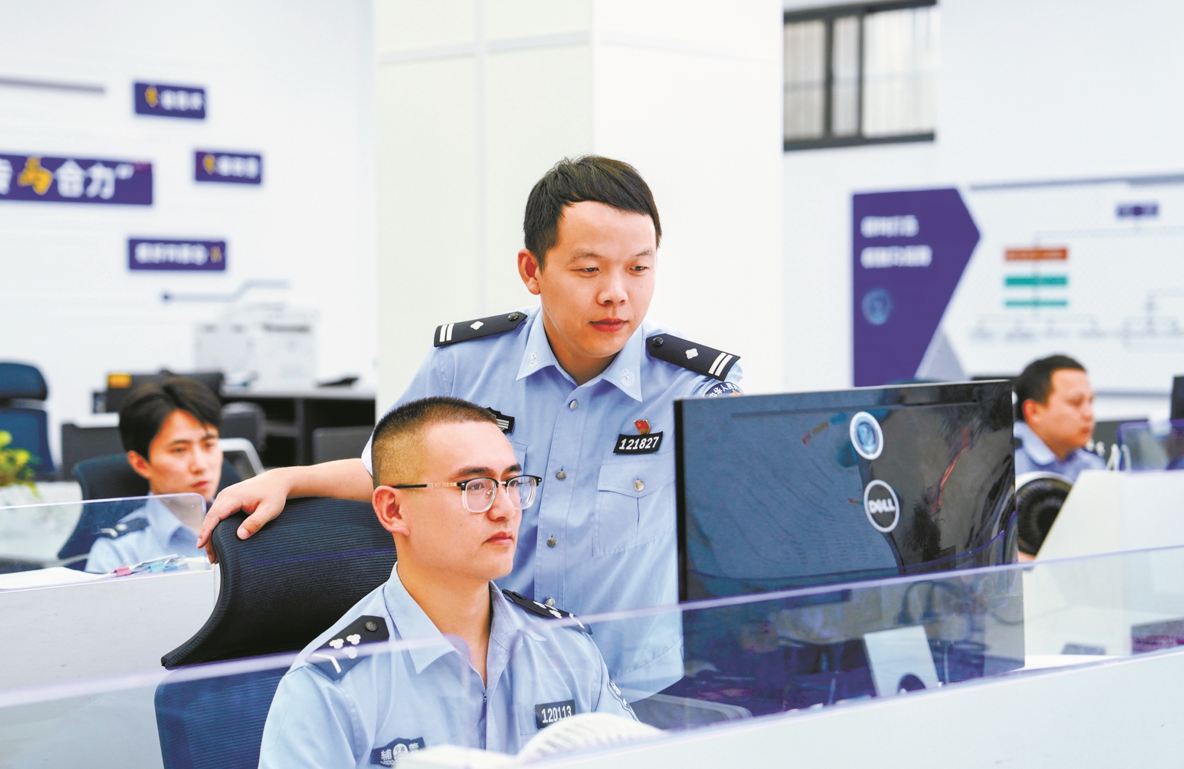 电话铃声此起彼伏,电子屏上实时滚动着预警信息。民辅警紧盯着电脑,指尖在键盘上飞舞,编织着一张无形的防护网。一场场无声的赛跑在方寸屏幕间上演,只为分秒必争阻截诈骗暗流,守护群众的“钱袋子”。