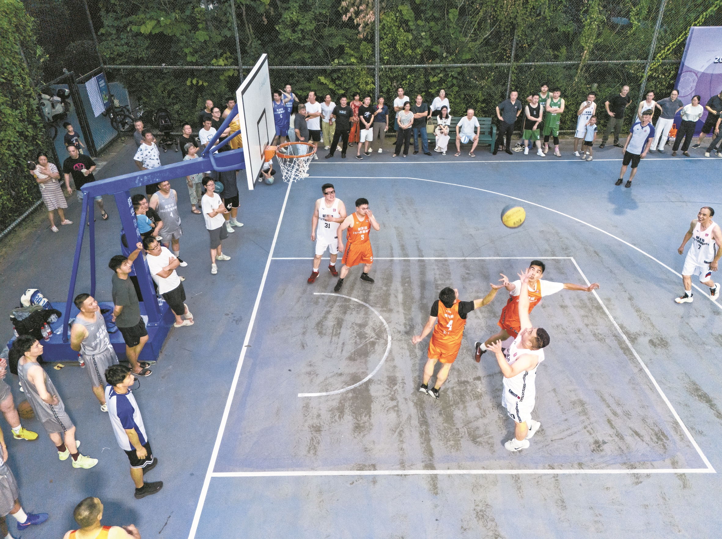 昨天傍晚,江北区慈城镇首届“村BA”在慈城新城体育场地开赛。比赛采用三对三赛制,点燃了小镇的夏夜激情。