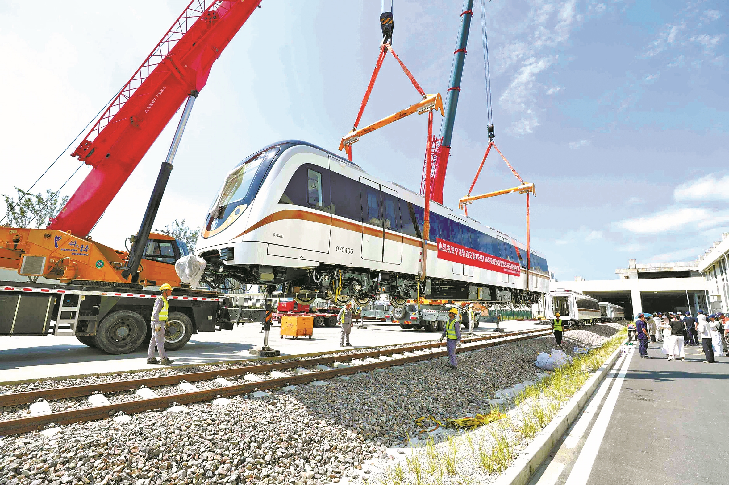 本报讯(记者尹幸芷 通讯员甬轨君)烈日下,一列电客车被吊车稳稳吊起,缓缓移向轨道。昨天,随着最后一列列车安全抵达下应南车辆段,宁波轨道交通7号线所有列车到位,全线40列新车整装待发,标志着车辆段正式由建设阶段转入运营筹备阶段,为后续开通运营打下坚实基础。
