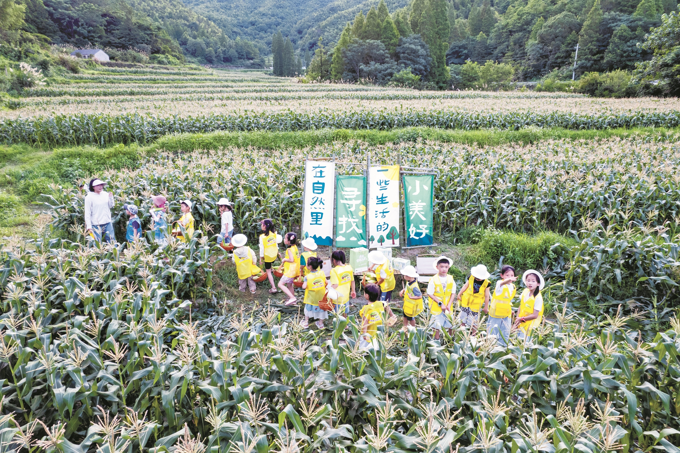烈日炙烤下,宁海县胡陈乡岙里王村的玉米田翻涌着金色波浪。7月5日,“夏日玉米大作战”研学活动现场,一群戴着草帽的孩子兴奋地掰下颗粒饱满的玉米,一旁的父母笑着记录下这堂生动的农耕研学课。