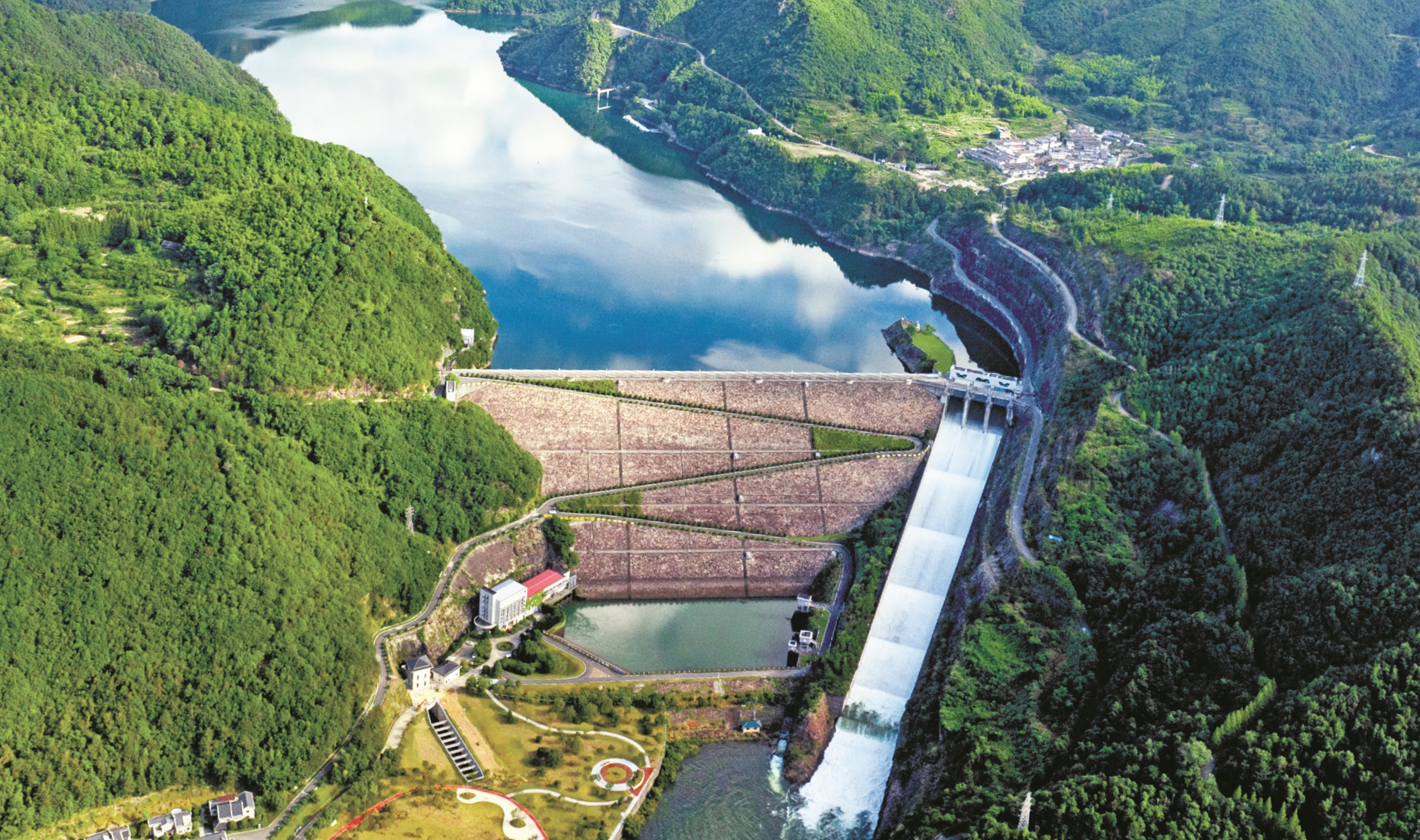 为保障白溪水库工程及白溪流域下游河道安全,白溪水库迅速行动,严格落实“早动、快动、小动”防汛防台工作机制,科学开展水库调度。前日19时,白溪水库开启溢洪道弧门进行预泄。图为昨日上午,该水库正在泄洪(航拍)。(唐严 童俊霖 摄)