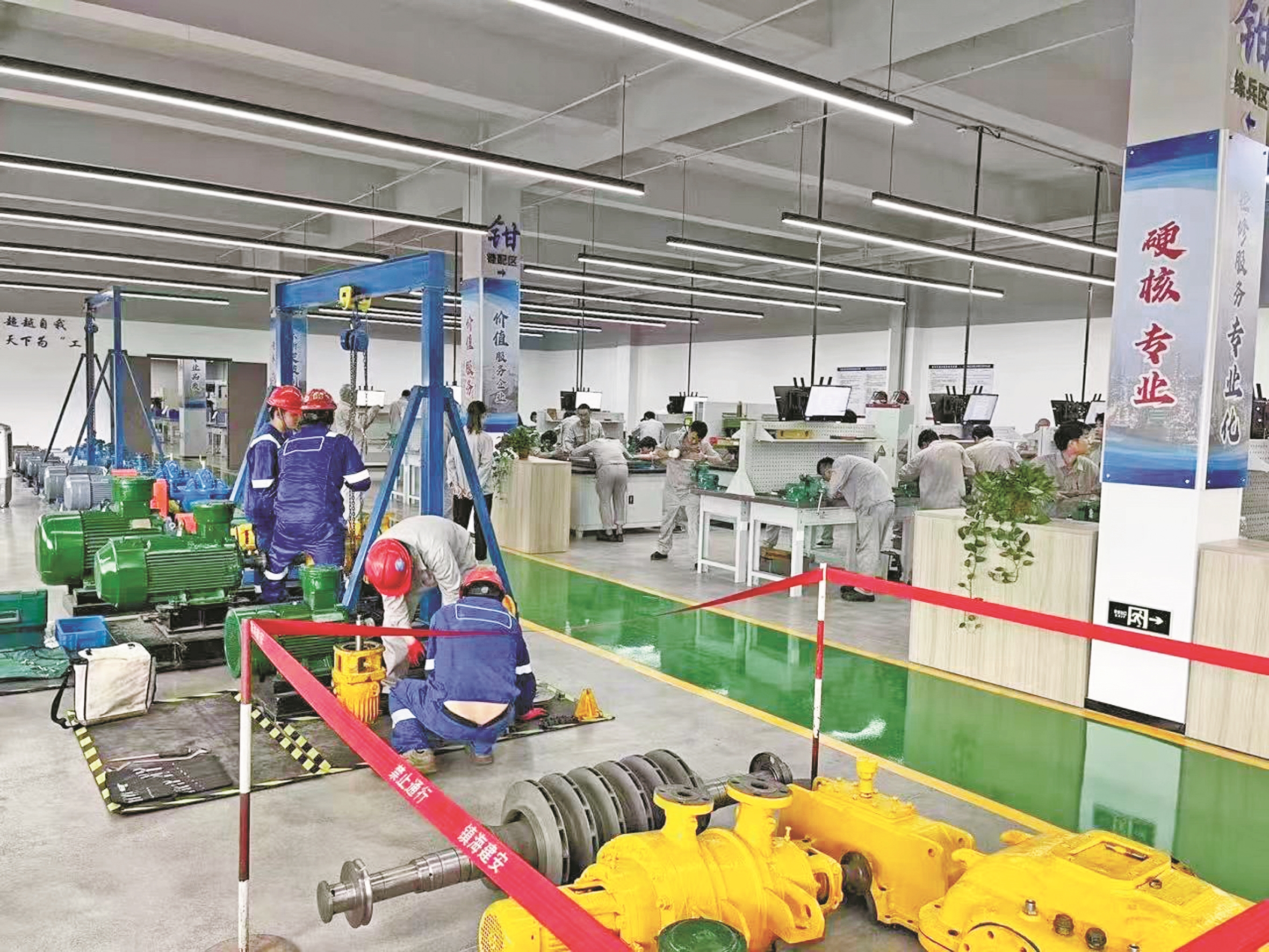 拧螺栓的方向要统一、垫片的厚度要一致、泵机和电机连接偏差不能超过0.08毫米……在实训基地内,省特级技师陈辉正手把手将30年的技术经验传授给徒弟;得益于培训讲师的理论支撑,“浙江工匠”雷伟清成功攻克镍基封筒焊接的技术难题,将镍基对接封筒焊接的合格率提升至98.5%以上……