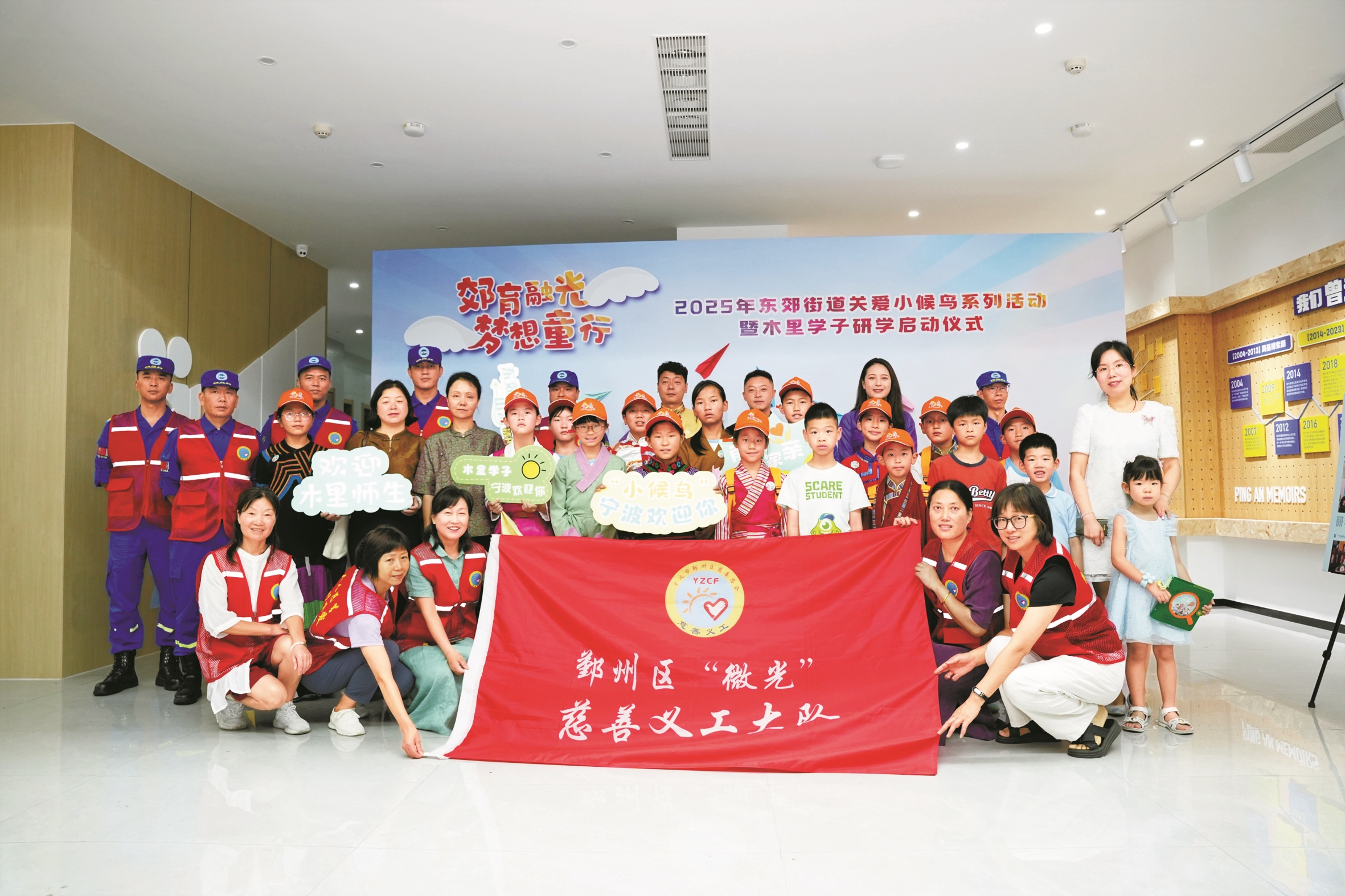 据悉,东郊街道连续三年组织木里学子宁波研学活动,此次活动与升级后的“小候鸟”系列项目共同构成该街道2025年关爱未成年人行动的重要内容。图为鄞州区“微光”慈善义工大队与木里学子合影。