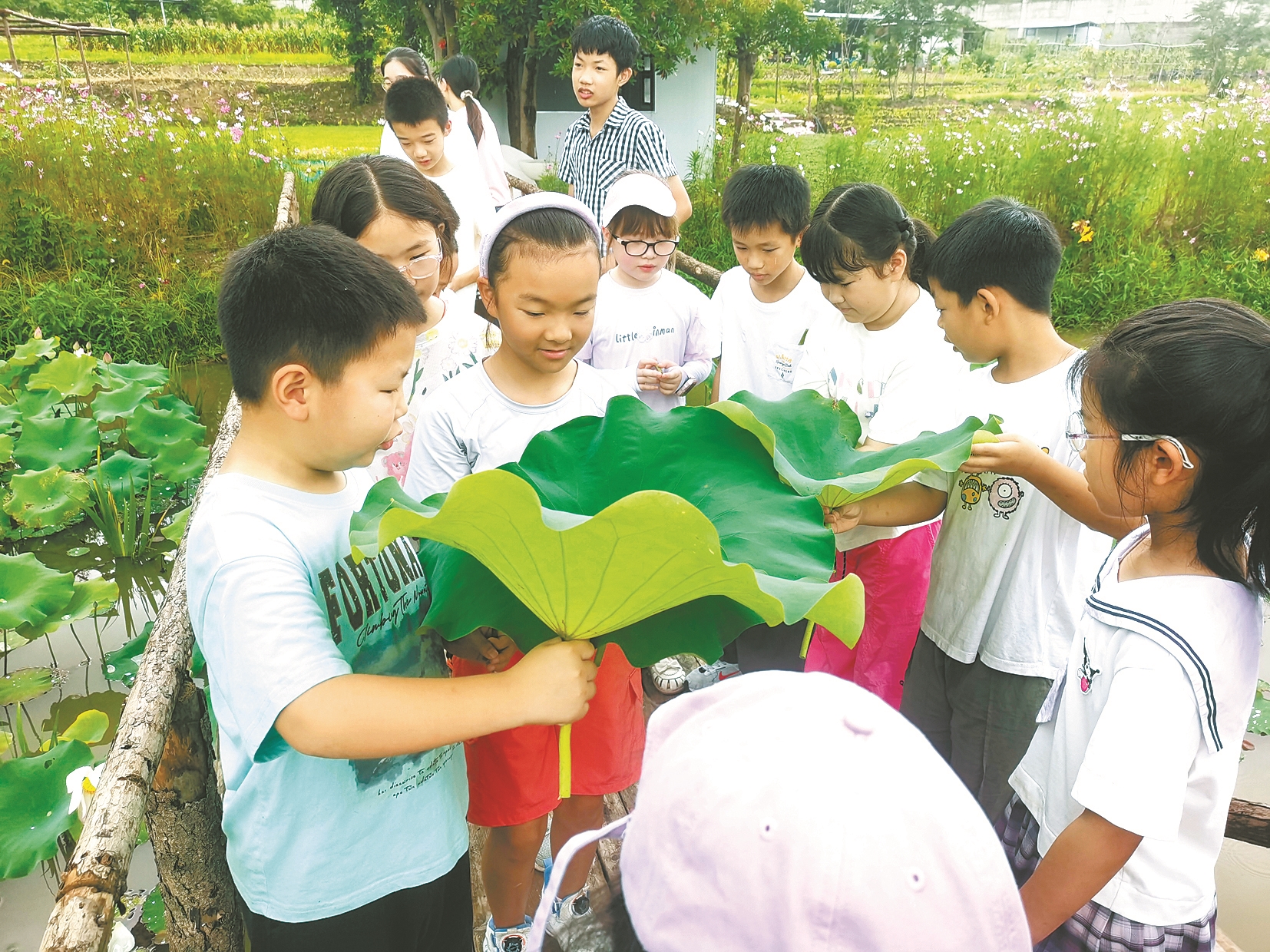 7月,正是“小神兽”体验暑期生活的好时候。前日,鄞州区东钱湖镇南岸社区的一群小朋友在农田里“撒野”,把社区“共享农场”变成了他们的暑期大课堂。顶着烈日,孩子们掰玉米、采丝瓜、摘荷叶,然后包装成一份份精美的“清凉礼盒”,走街串巷,送给环卫工人、社区高龄或独居老人。(戎美容 张郑艳 文/摄)